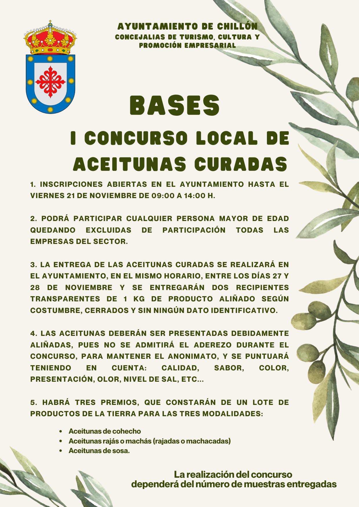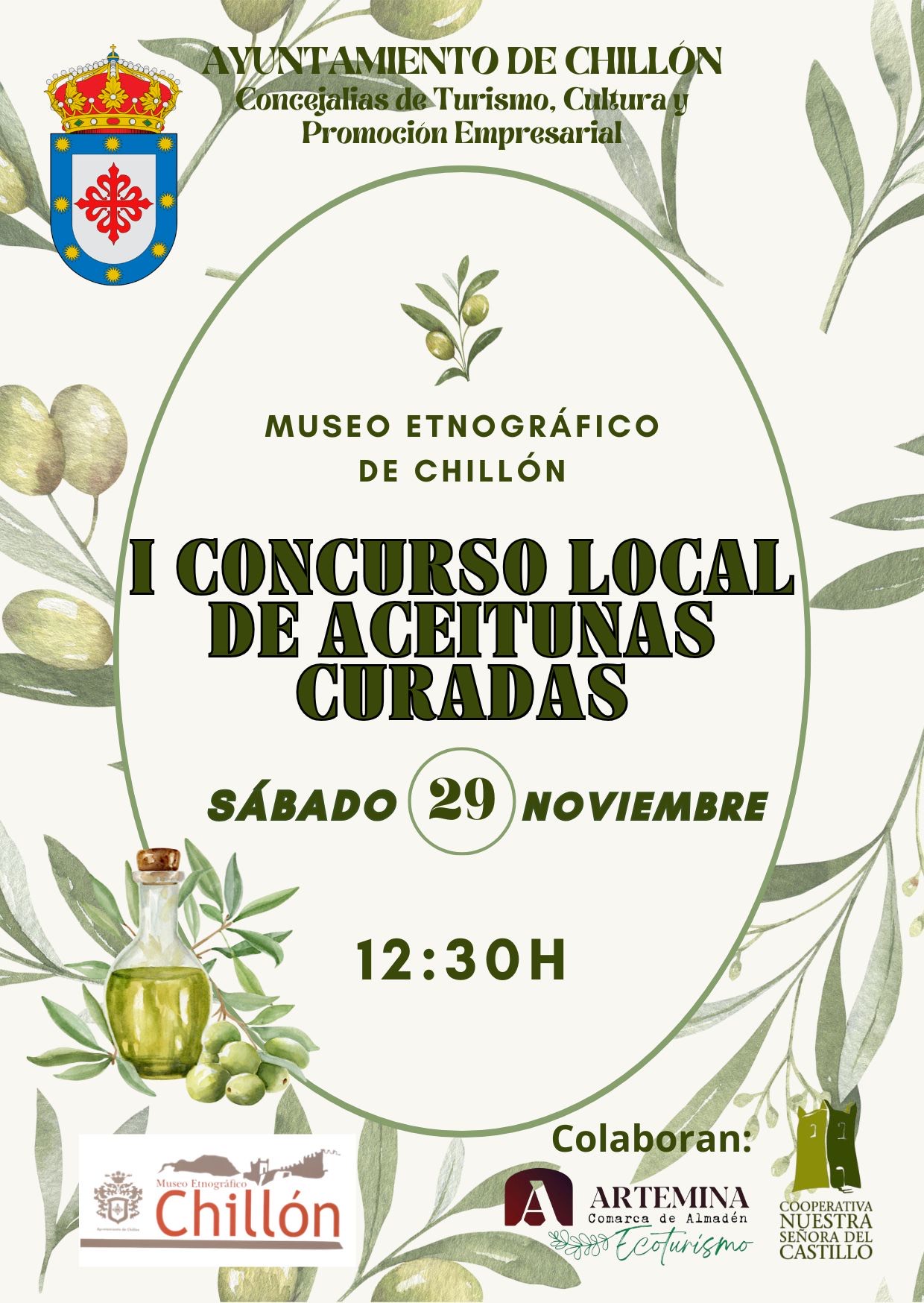 Por ello, el Ayuntamiento de Chillón lanza el I Concurso Local de Aceitunas Curadas, que se celebrará el mismo sábado 29 de noviembre, durante el III Festival de las Fuentes.