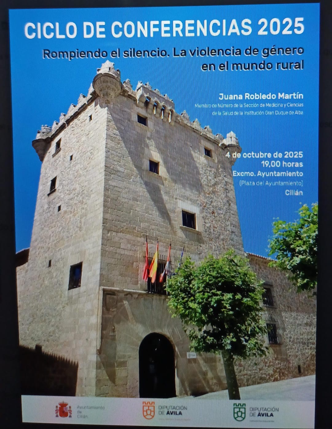 Os invitamos a participar en la conferencia ofrecida por la Diputación de Ávila, que se celebrará el Sábado 4 de Octubre en el Ayuntamiento. Será impartida por Juana Robledo Martín , a las 19 horas con el título “ Rompiendo el silencio. La violencia de género en el mundo rural “