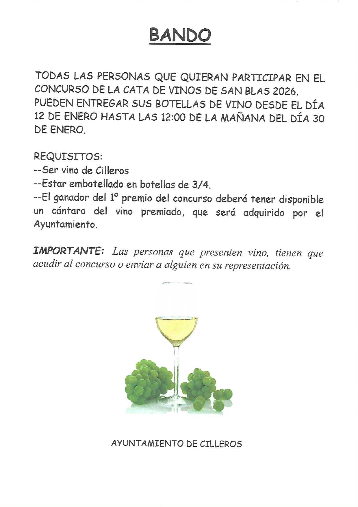 HOY DÍA 2 DE FEBRERO CON MOTIVO DE LA CATA DE VINO QUE SE CELEBRA EN LA PLAZA DEL AYUNTAMIENTO QUEDARÁ CORTADO EL TRANSITO EN LAS CALLES DARIO BACAS