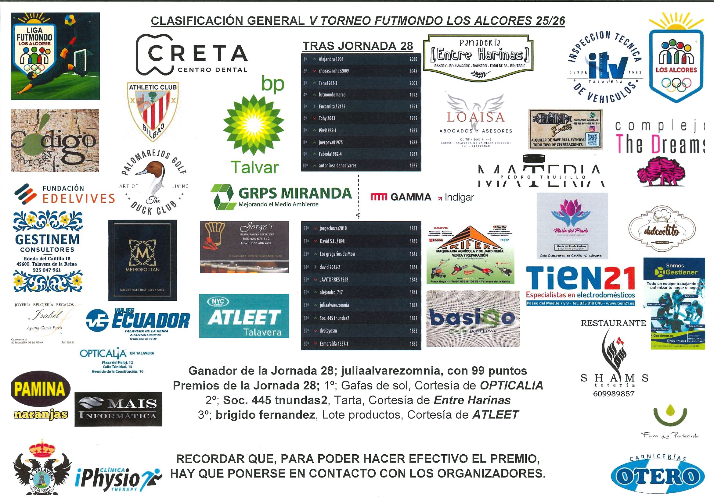 Damos a conocer al ganador de la jornada veintiocho: