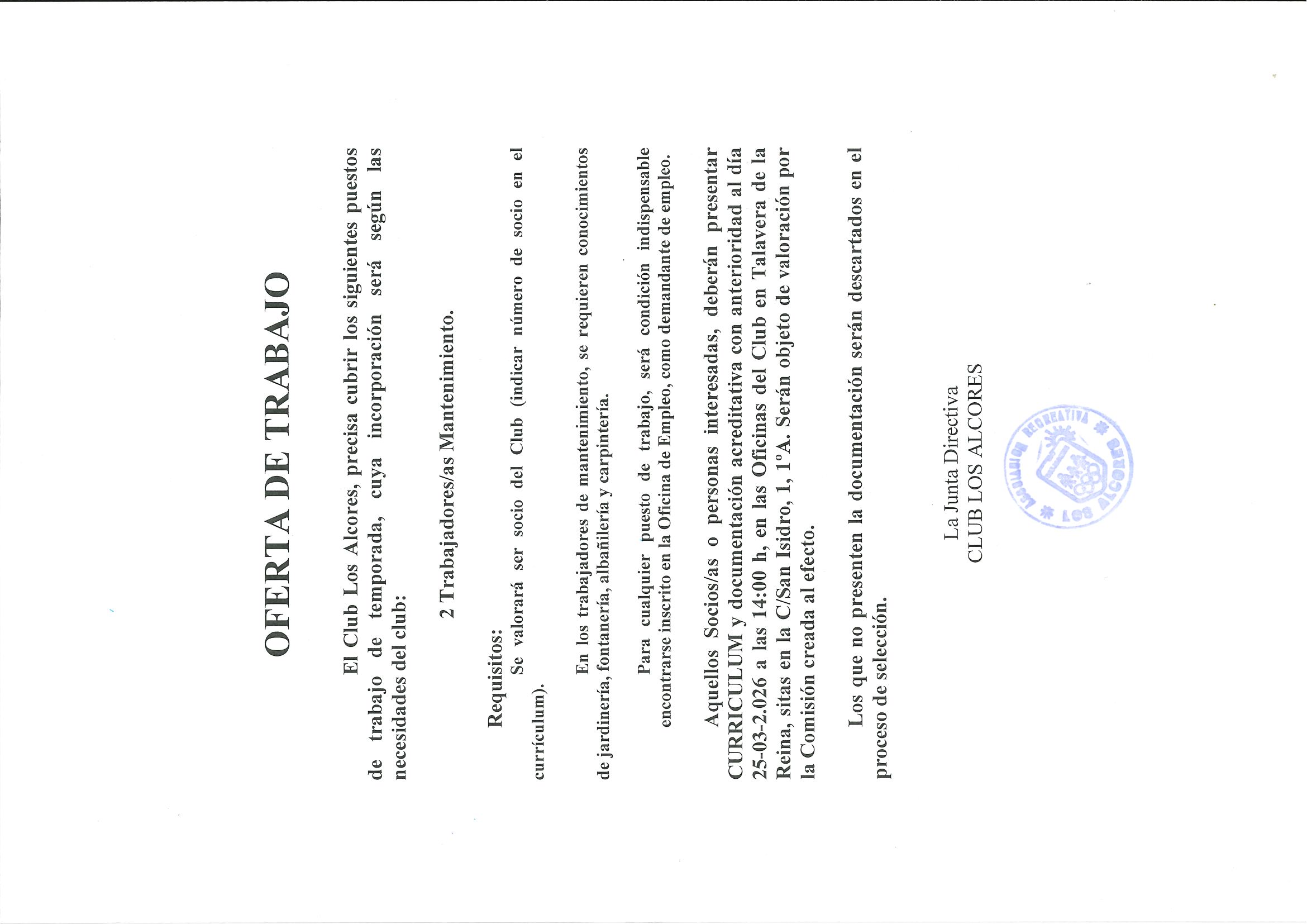 Adjuntamos oferta de trabajo para 2026.
