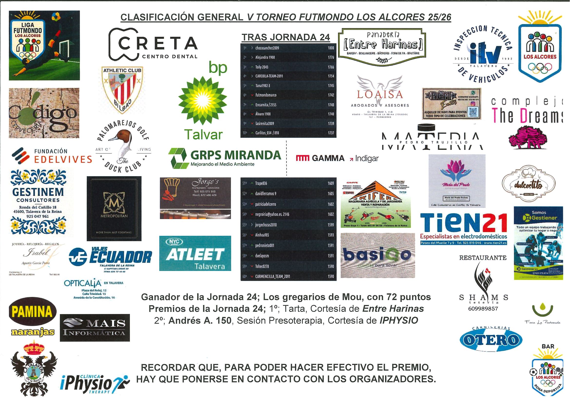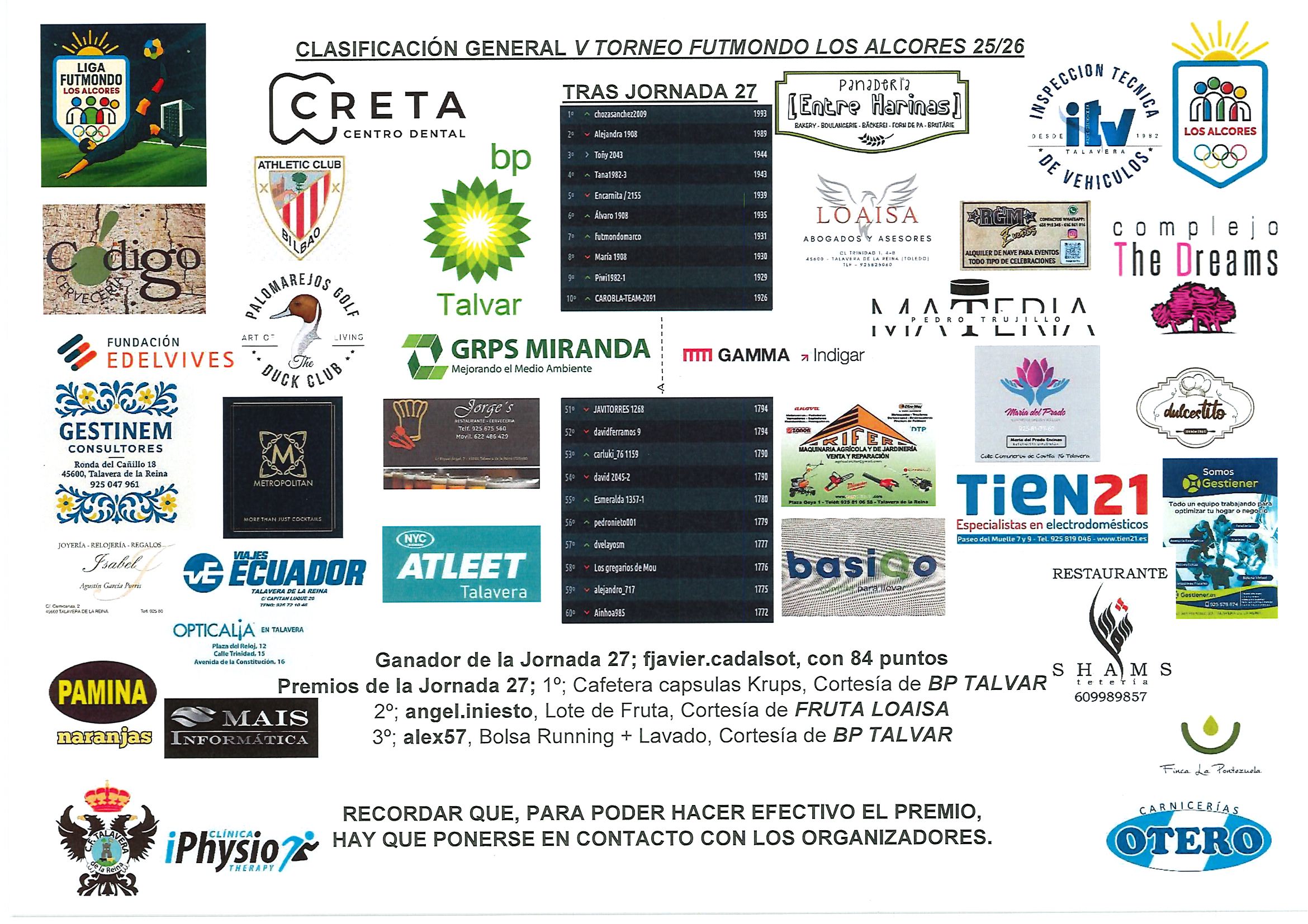 Enhorabuena, para recogida de premios contactar con el organizador (Alberto Rodrigo 658515467).