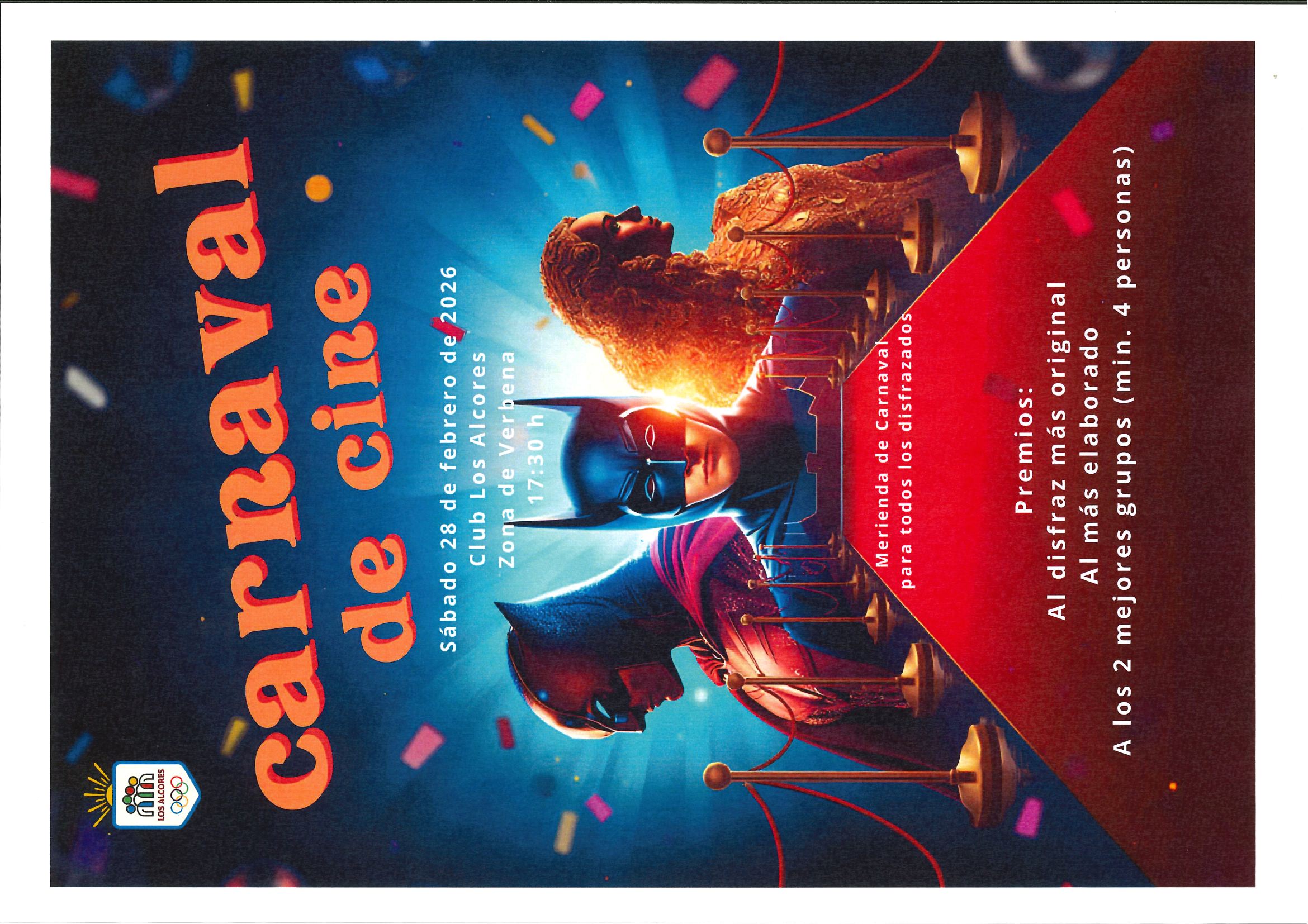 Este año, el tema será "Carnaval de Cine", así que prepárate para brillar como tu personaje favorito. Habrá premios para el disfraz más original, el más elaborado y a los dos mejores grupos (mínimo 4 personas). Además, todos los disfrazados podrán disfrutar de una deliciosa merienda de carnaval.