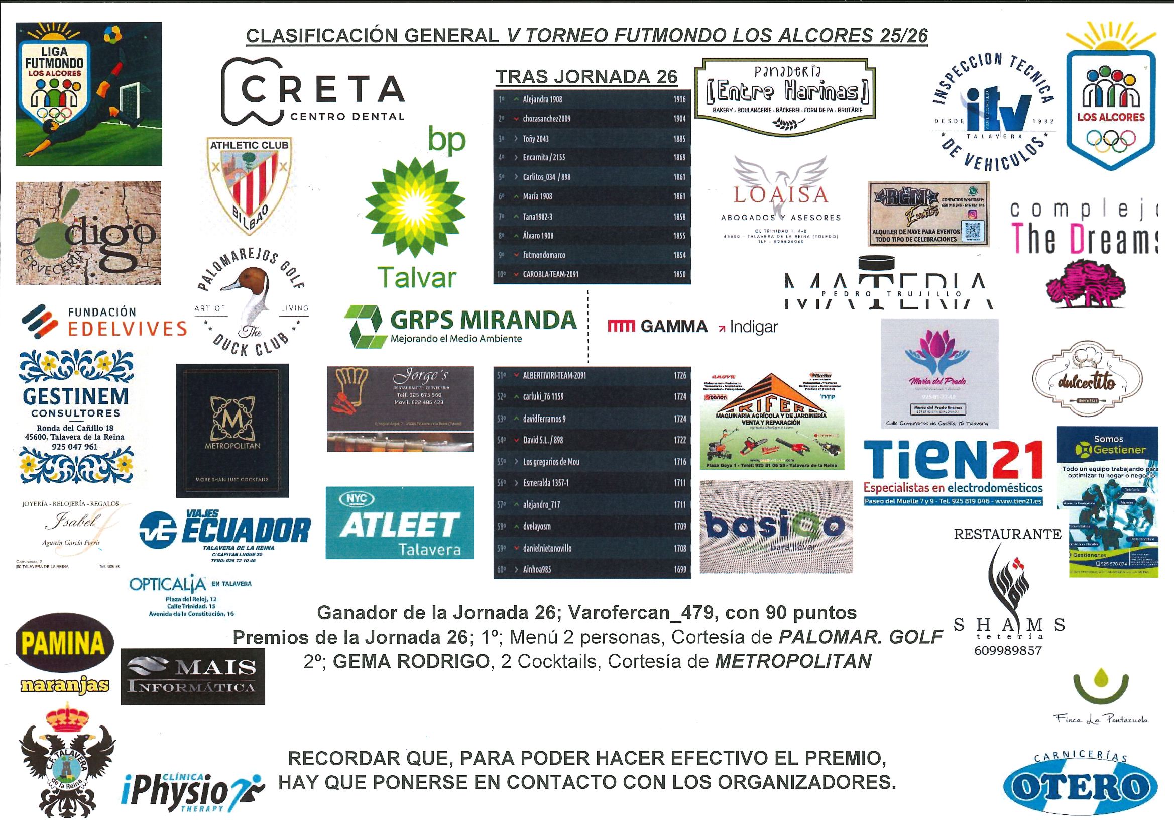 Damos a conocer al ganador de la jornada veintiseis: