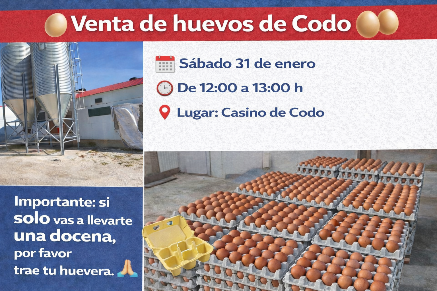 Además, durante la tarde habrá barra y bingo a cargo de la Asociación Deportiva Codo, para que no falte nada 🥂🎉