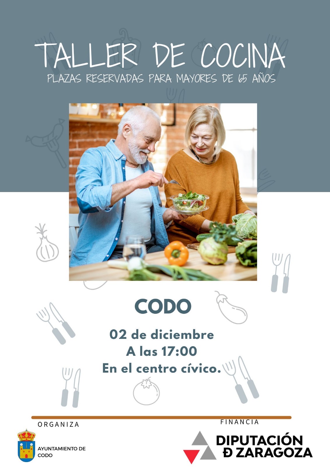 El próximo 2 de diciembre a las 17:00, en el Centro Cívico de Codo, se celebrará un Taller de Cocina.