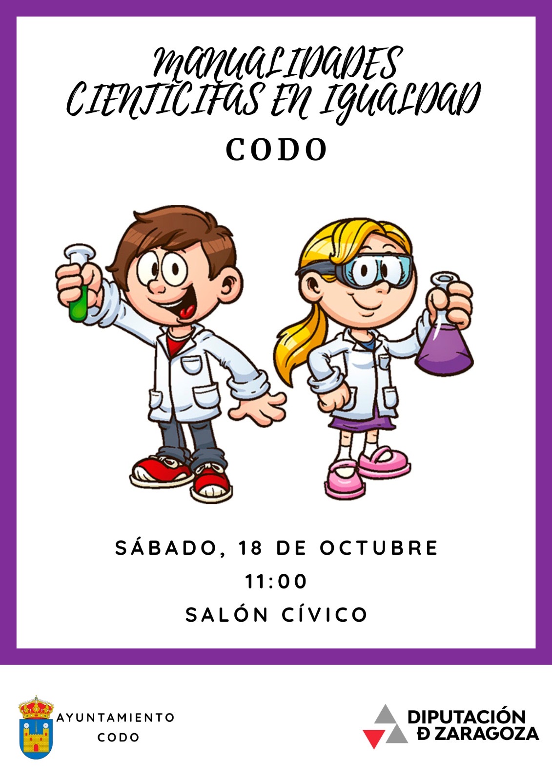 Este sábado 18 de octubre a las 11:00 h te esperamos en el Salón Cívico de Codo para disfrutar de “Manualidades Científicas en Igualdad” 🔬👩🔬👨🔬