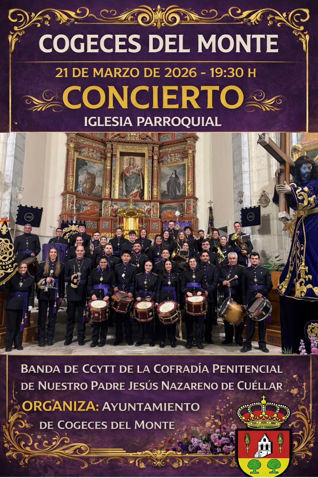 El sábado 21 de Marzo a las 19:30 hs. os esperamos en la Iglesia Parroquial para acompañar a la Banda de CC y TT "Ntro. Padre Jesús Nazareno de Cuéllar" en su concierto.