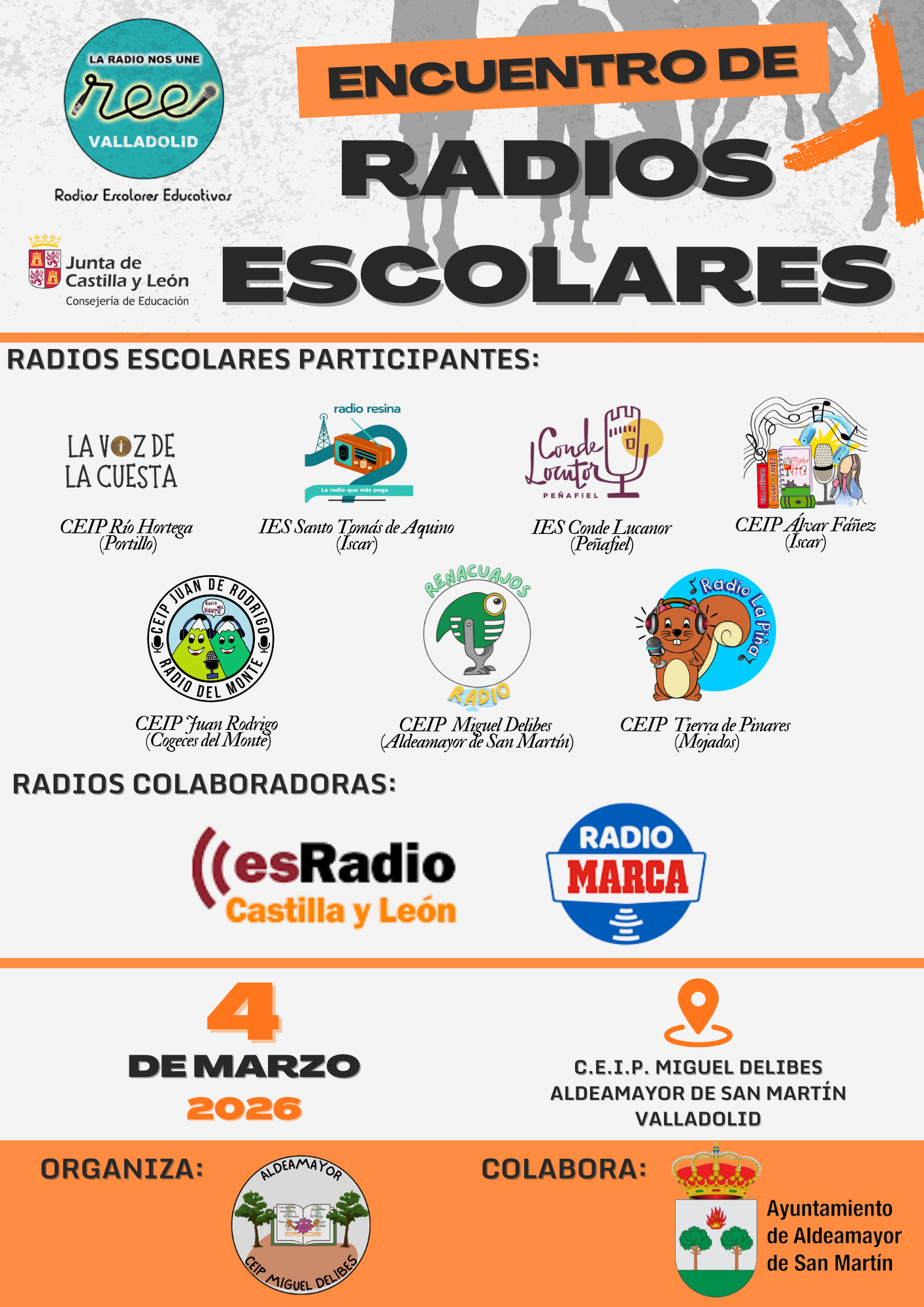 Hoy, 4 de Marzo, los alumnos del colegio han acudido a un encuentro de "Radios Escolares" al municipio de Aldeamayor. Allí junto a otros centros han realizado diferentes talleres en torno a la radio.