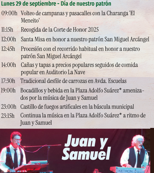 LAS PERSONAS QUE HAYAN PARTICIPADO EN LA OFRENDA Y LAS CARROZAS, PUEDEN CONTACTAR CON ANDRÉS (COMISIÓN DE FIESTAS) PARA QUE SE LAS ENVÍE POR Whatsapp o CORREO ELECTRÓNICO. -