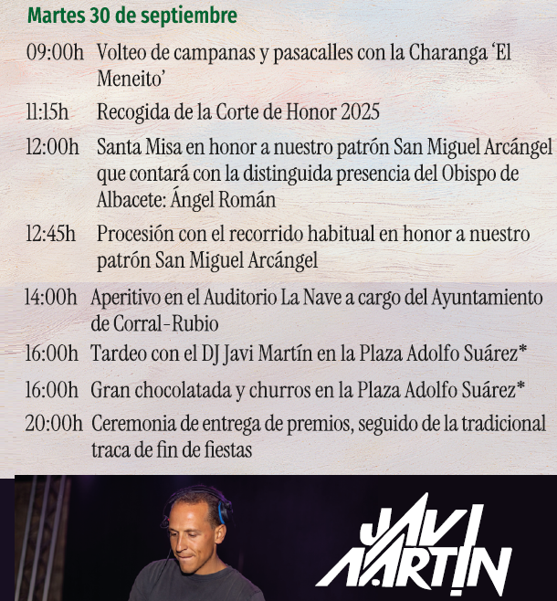 Se recuerda que el tardeo, los churros con chocolate y la entrega de premios se realizará en el "Auditorio La Nave". Los churros con chocolate se empezarán a repartir a las 18:30hOFRENDA DE FLORES EN LA IGLESIA