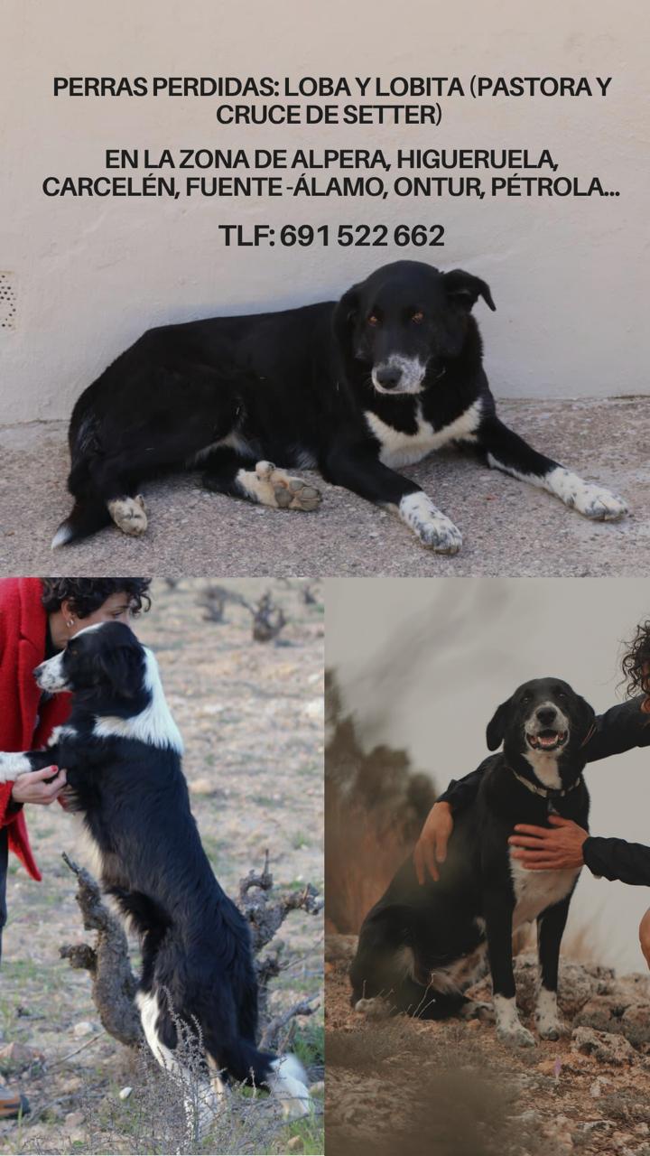 Se han perdido 2 perras pastoras, madre e hija. Atienden por Loba y Lobita. Color negro con alguna mancha blanca, la hija que es mas delgada y pelo un poco mas largo, tiene mas blanco en la cabeza.