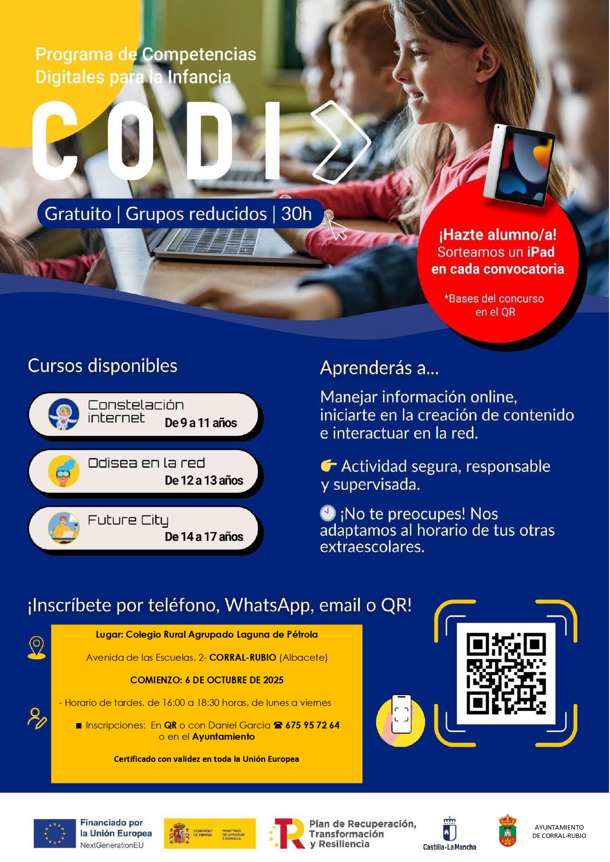 ℹ️ El Ayuntamiento informa del inicio de las actividades de la Ludoteca y del Centro Joven de Corral Rubio.