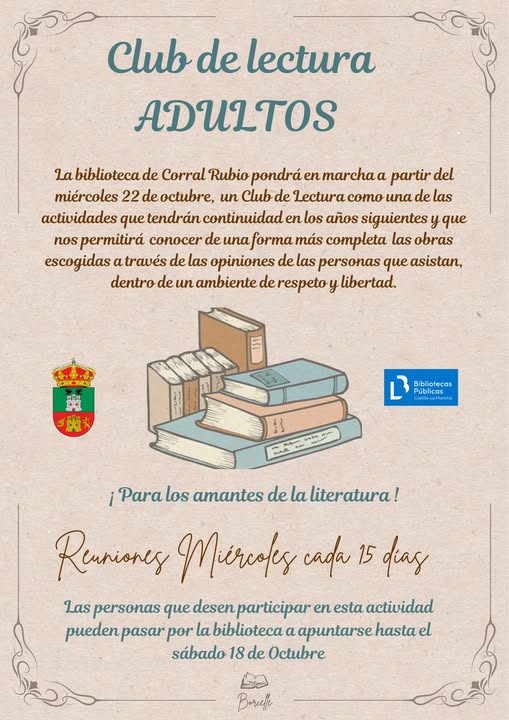 Las personas interesadas en participar en el club de lectura pueden inscribirse de forma presencial en la biblioteca hasta el sábado, 18 de octubre.
