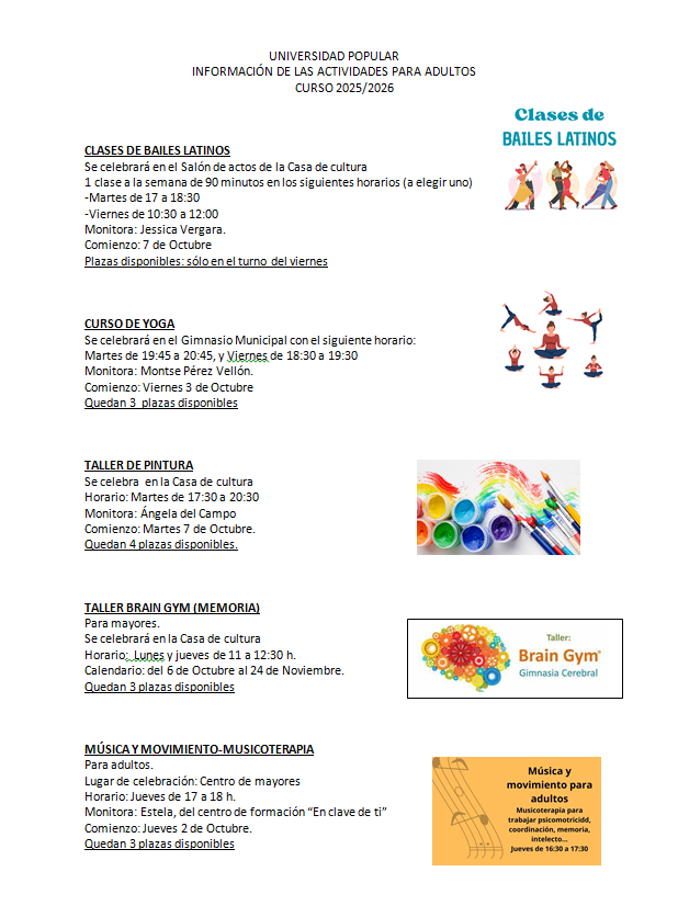 🎓UNIVERSIDAD POPULAR ➡️ INFORMACIÓN DE LAS ACTIVIDADES PARA ADULTOS