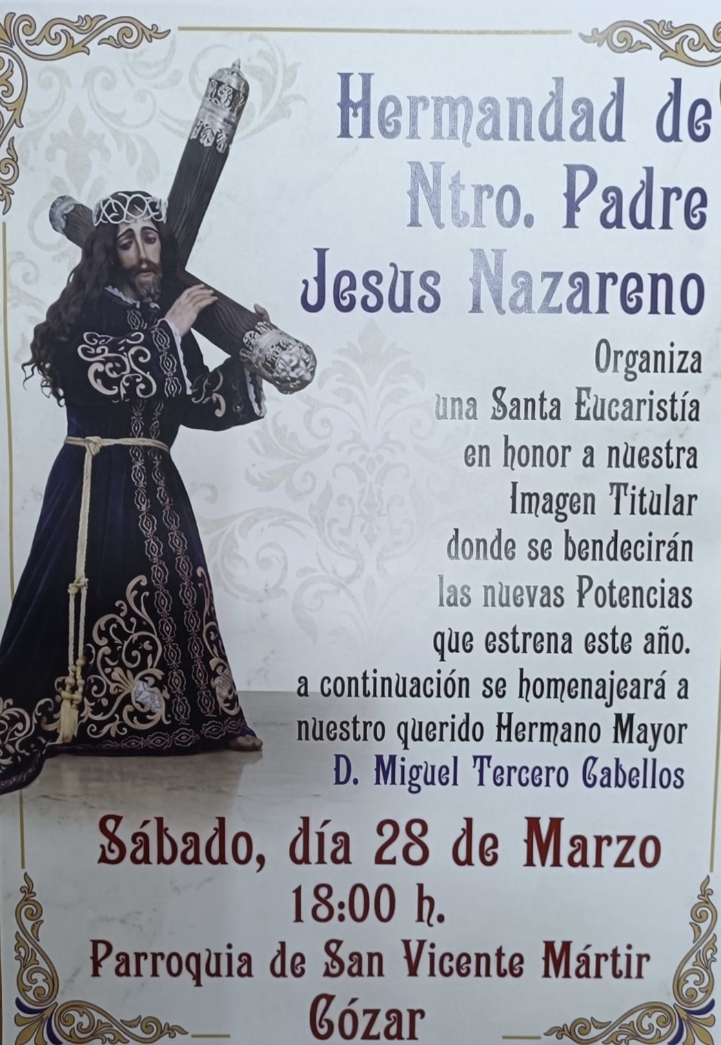 ✅ Organiza una Santa Eucaristía en honor a nuestra Imagen Titular donde se bendecirán las nuevas Potencias que estrena este año.