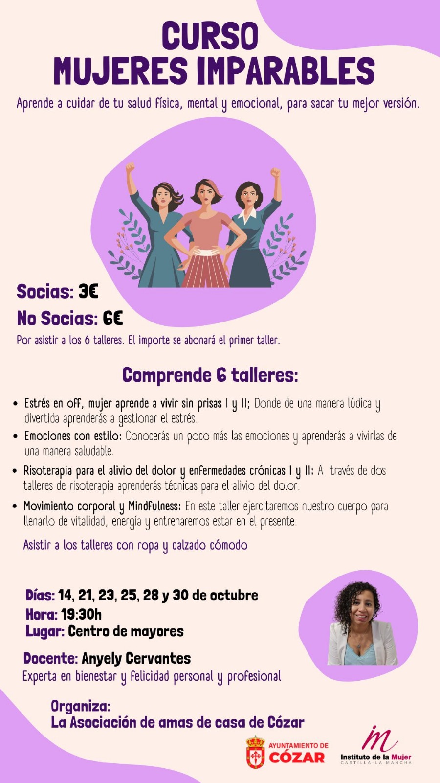 El Ayuntamiento informa sobre el ciclo de talleres "Mujeres imparables", dirigido a cuidar la salud física, mental y emocional para potenciar el bienestar personal.