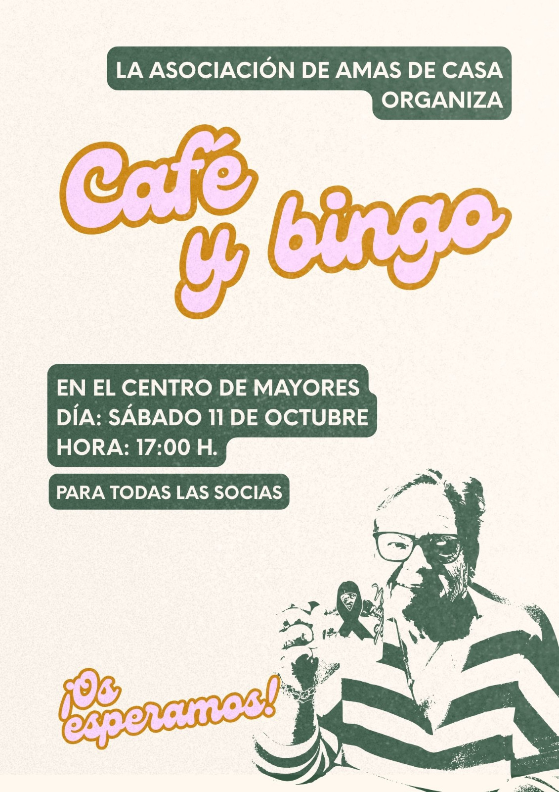 La Asociación de Amas de Casa organiza un café acompañado de una sesión de bingo en el Centro de Mayores. Se invita a participar a todas las socias.