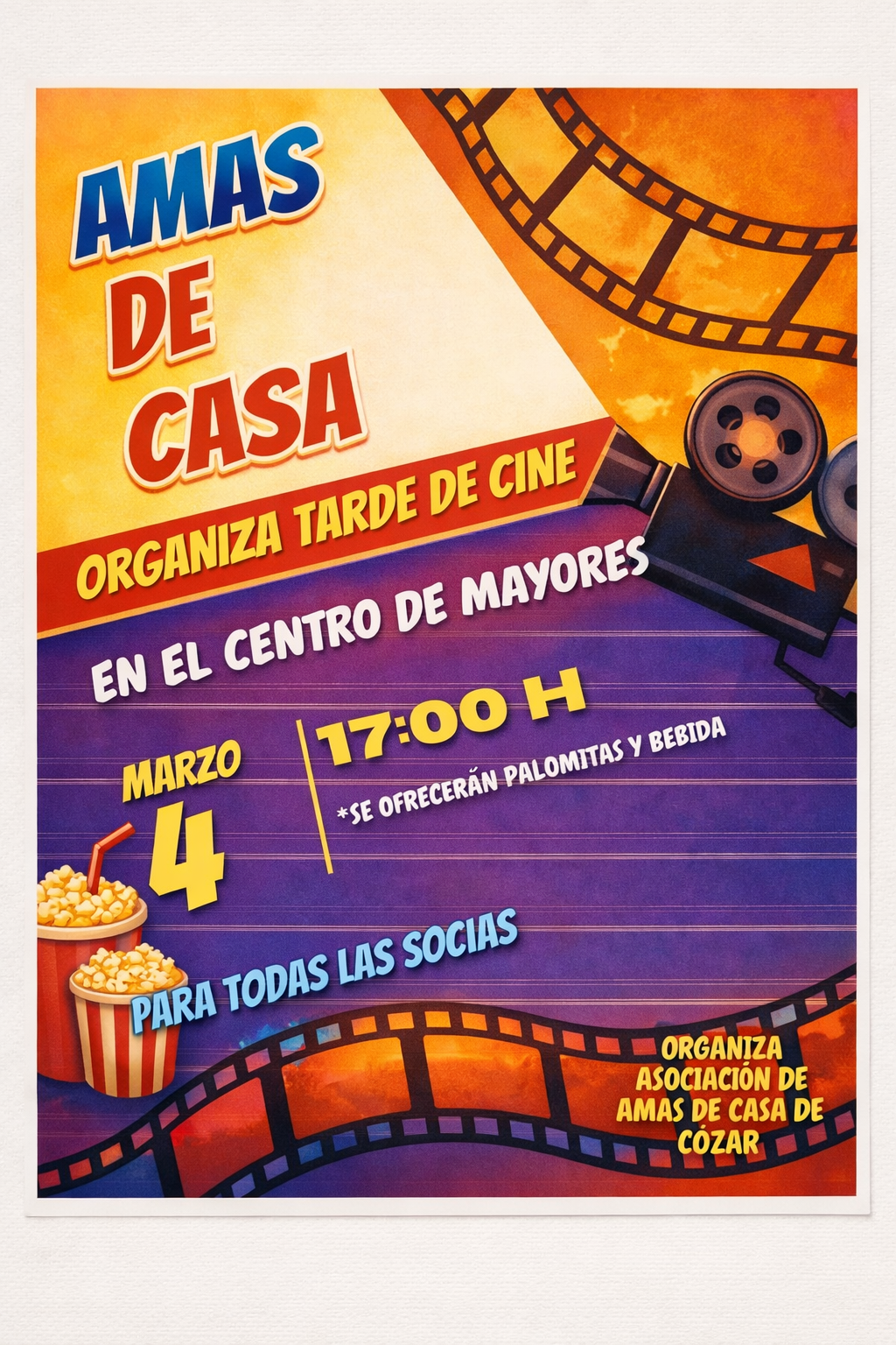 La Asociación de Amas de Casa de Cózar organiza una divertida tarde de cine en el Centro de Mayores.