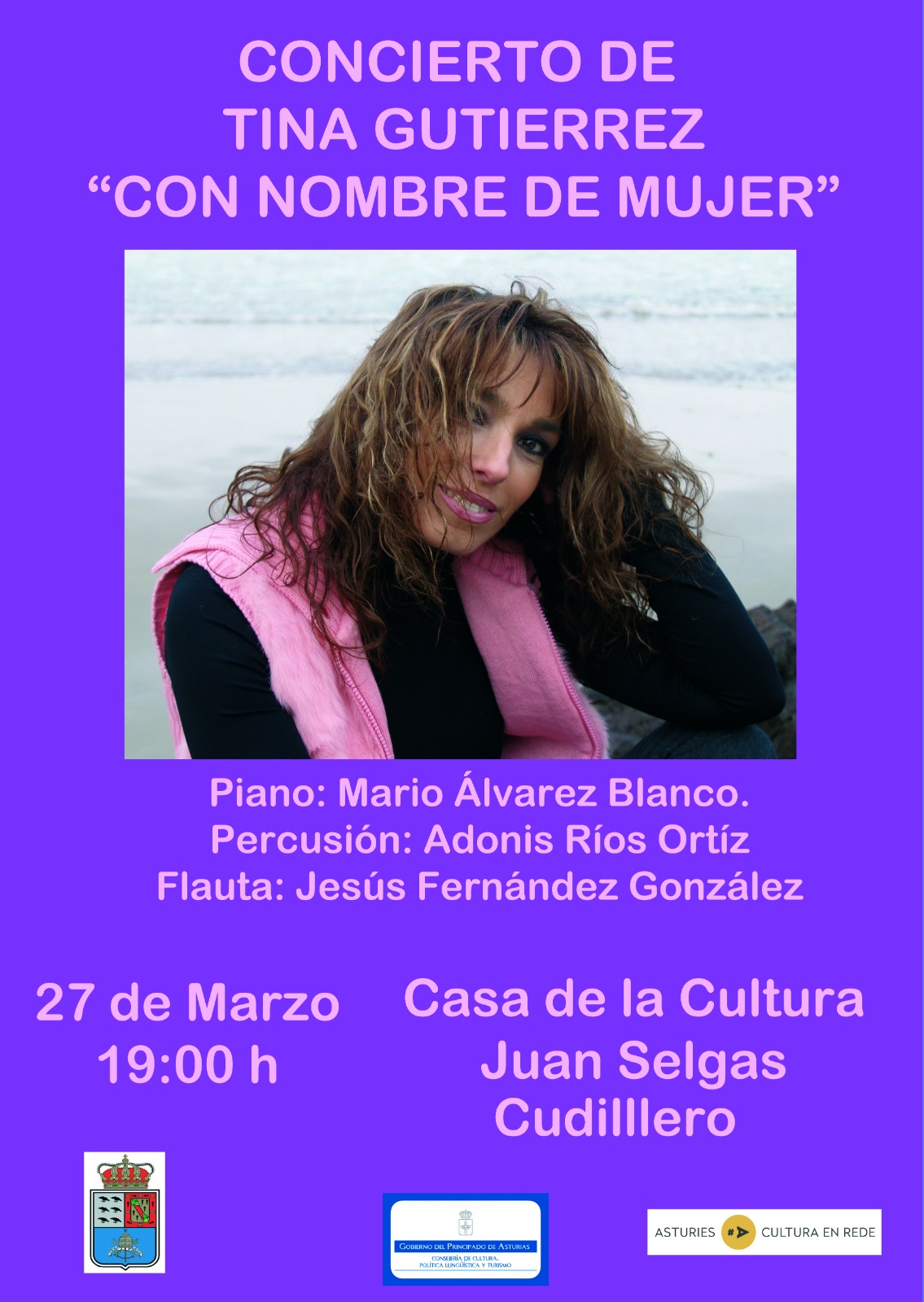 CONCIERTO DE TINA GUTIERREZ "CON NOMBRE DE MUJER" EL VIERNES 27 DE MARZO A LAS 19 HORAS EN LA CASA DE CULTURA "JUAN SELGAS" DE CUDILLERO.