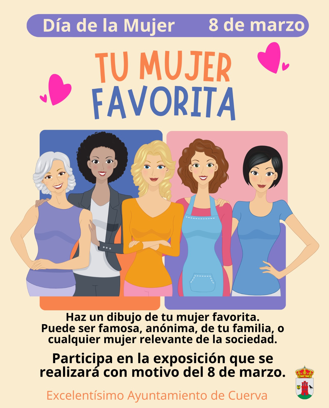 El Excmo Ayuntamiento de Cuerva, dentro de las actividades previstas para conmemorar el Día de la Mujer el próximo 8 de marzo, ha programado una exposición de dibujos de niños y jóvenes hasta 18 años, en el que queden reflejadas las mujeres favoritas de cada uno de ellos; pueden ser personajes famosos, anónimos o familiares. El objetivo es hacer un pequeño homenaje a esas grandes mujeres que inspiran nuestra vida.