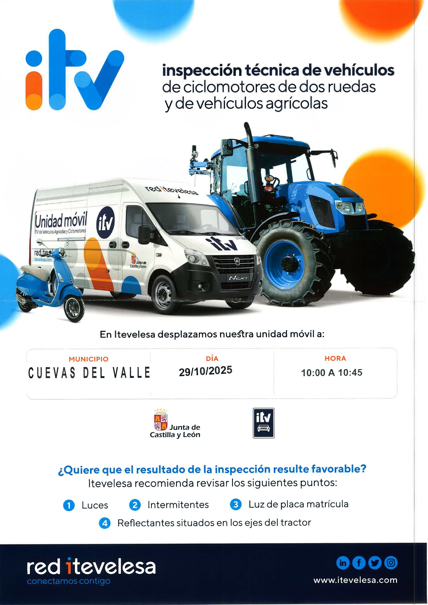 Reanudación de los talleres de ganchillo y manteos. El de ganchillo sería los jueves de 17 a 19 h en la planta baja del ayuntamiento viejo y el de manteos los viernes de 16:30 a 18:30h en la segunda planta del ayuntamiento viejo. Se empezaría el día 2 de octubre con el de ganchillo y el día 3 con el de los manteos. Para ganchillo lleven una aguja del número 5.INSPECCIÓN TÉCNICA DE VEHÍCULOS AGRÍCOLAS Y CICLOMOTORES DE DOS RUEDAS.:29/10/2025