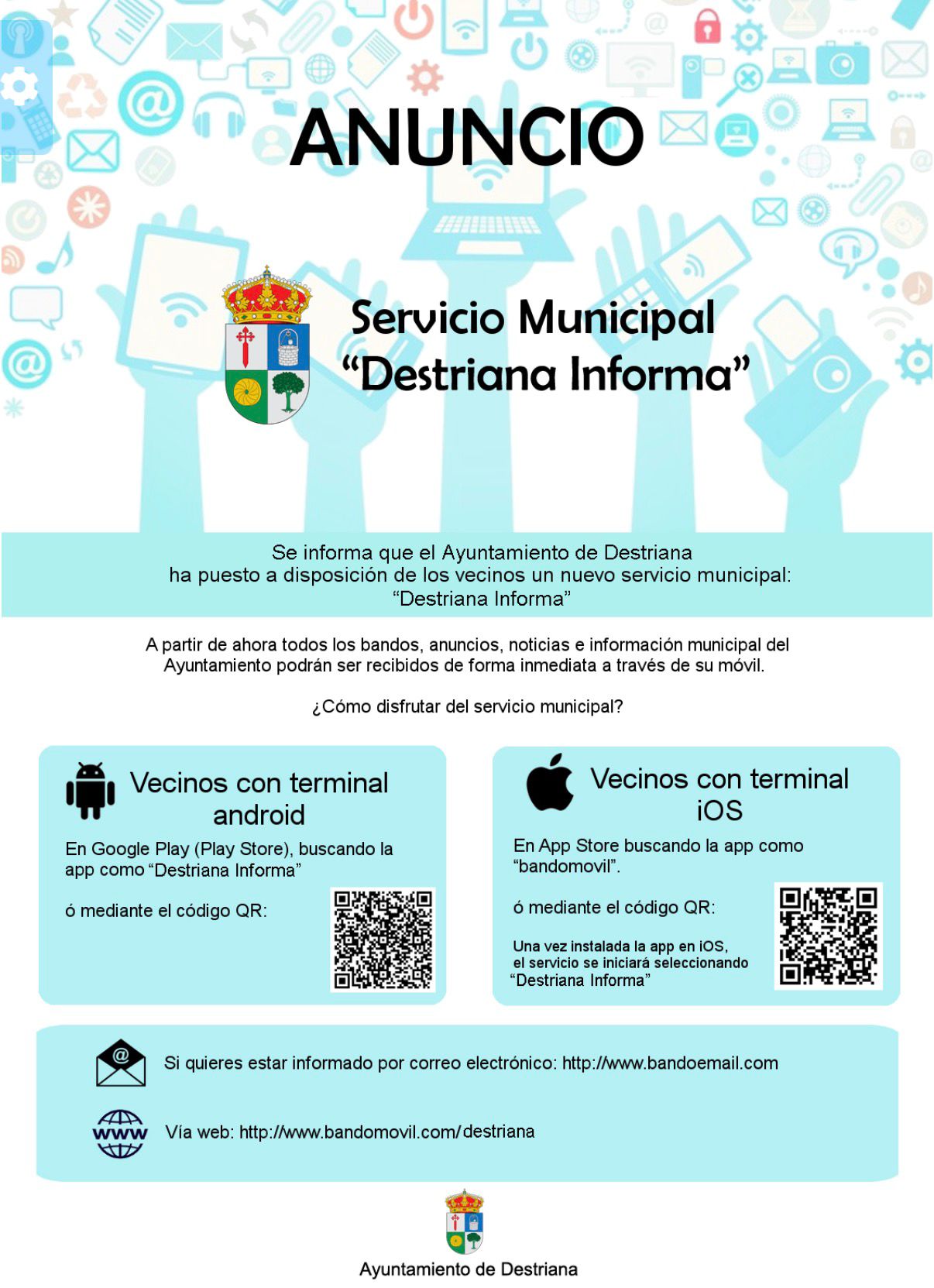 Se informa que el Ayuntamiento de Destriana ha puesto a disposición de los vecinos un nuevo servicio municipal: "Destriana Informa"
