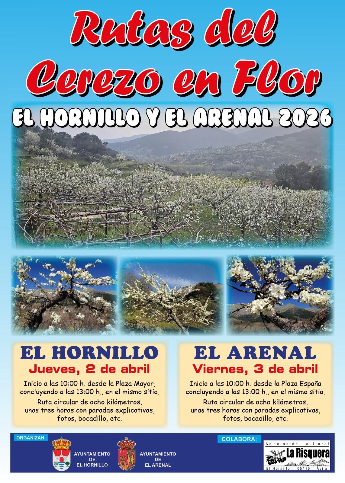 El Ayuntamiento de El Arenal, en colaboración con el Ayuntamiento de El Hornillo, organiza una nueva edición de las Rutas del Cerezo en Flor, una oportunidad única para disfrutar de uno de los momentos más espectaculares de nuestro entorno natural.
