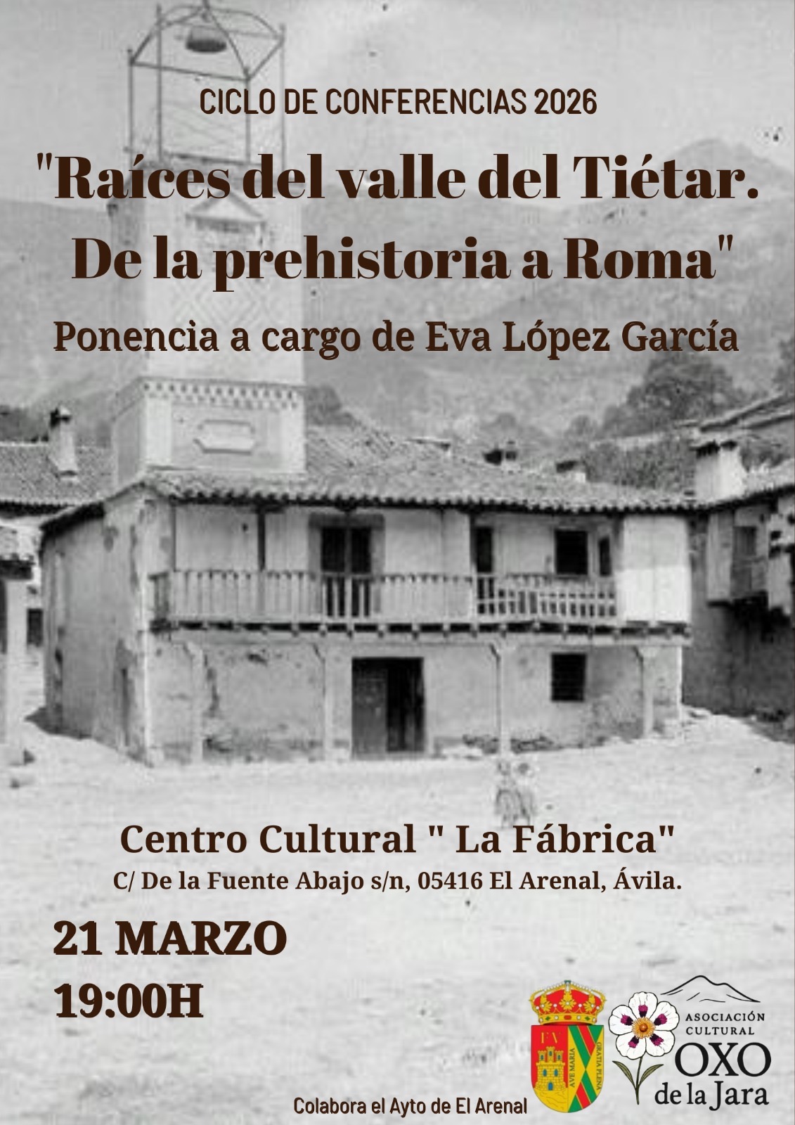 El próximo 21 de marzo a las 19:00 horas tendrá lugar en El Arenal una nueva conferencia dentro del ciclo “Raíces del valle del Tiétar. De la prehistoria a Roma”, una interesante ponencia que nos acercará a la historia y los orígenes de nuestra comarca.