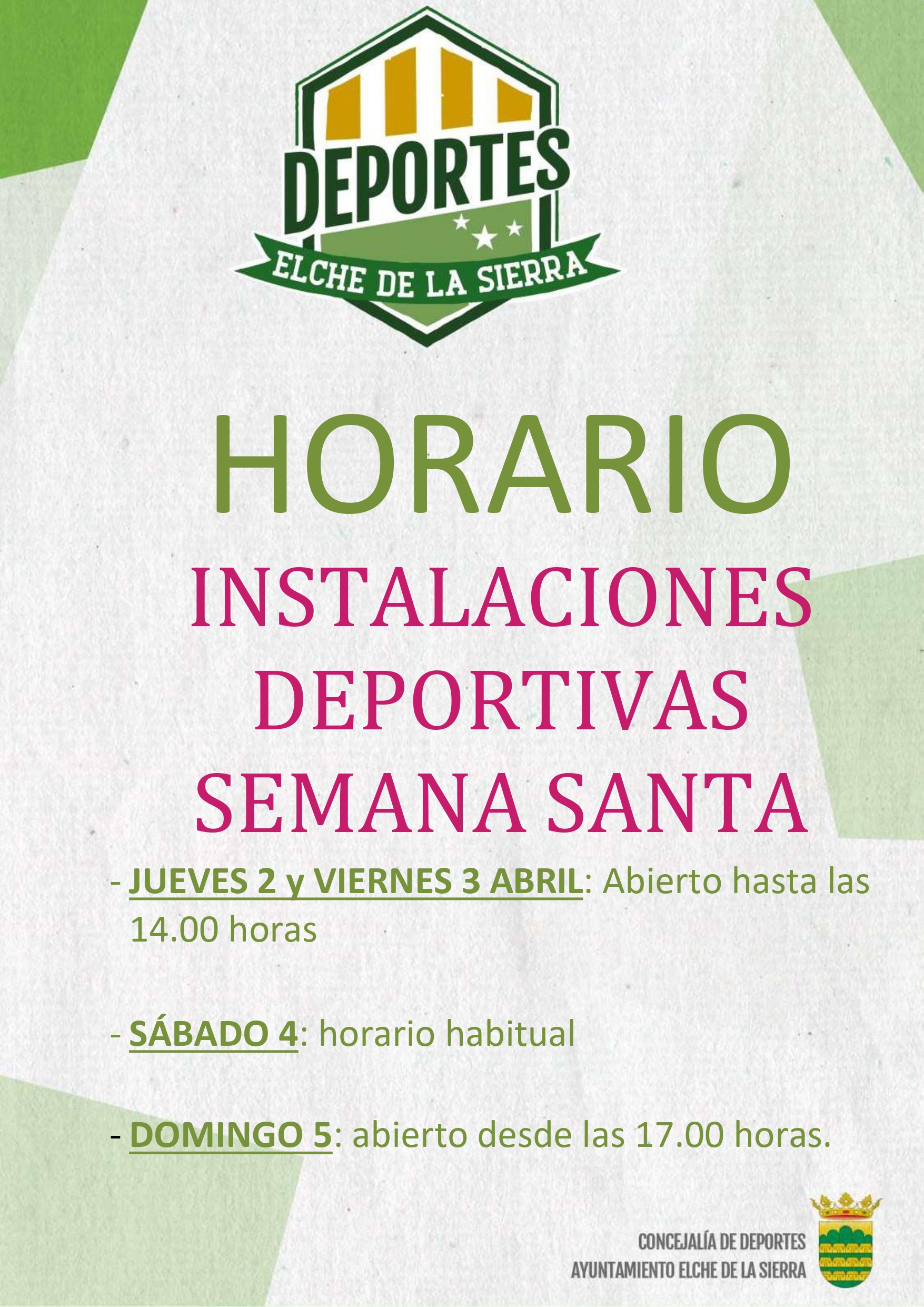 Se informa a los vecinos y usuarios de las instalaciones deportivas municipales de los horarios especiales con motivo de la Semana Santa: