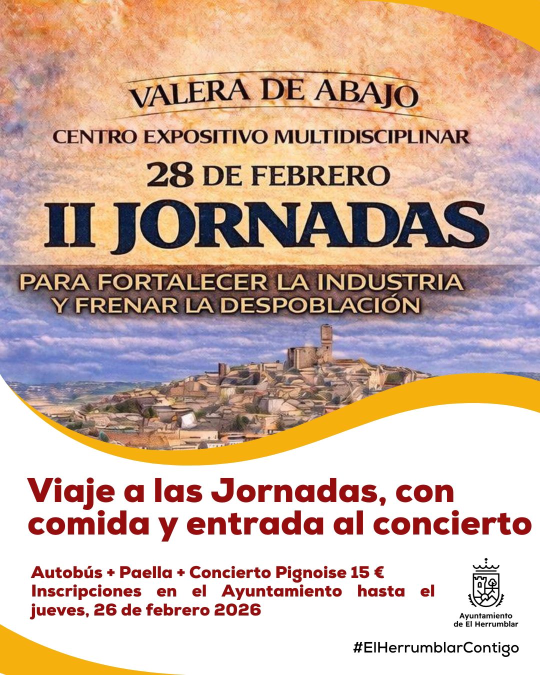 Desde el Ayuntamiento de El Herrumblar informamos que se pondrá a disposición un autobús para asistir al reconocimiento que, desde las II Jornadas para fortalecer la industria y frenar la despoblación del Ayuntamiento de Valera de Abajo, se le concederá a la empresa local Champiñones “La Joya”.