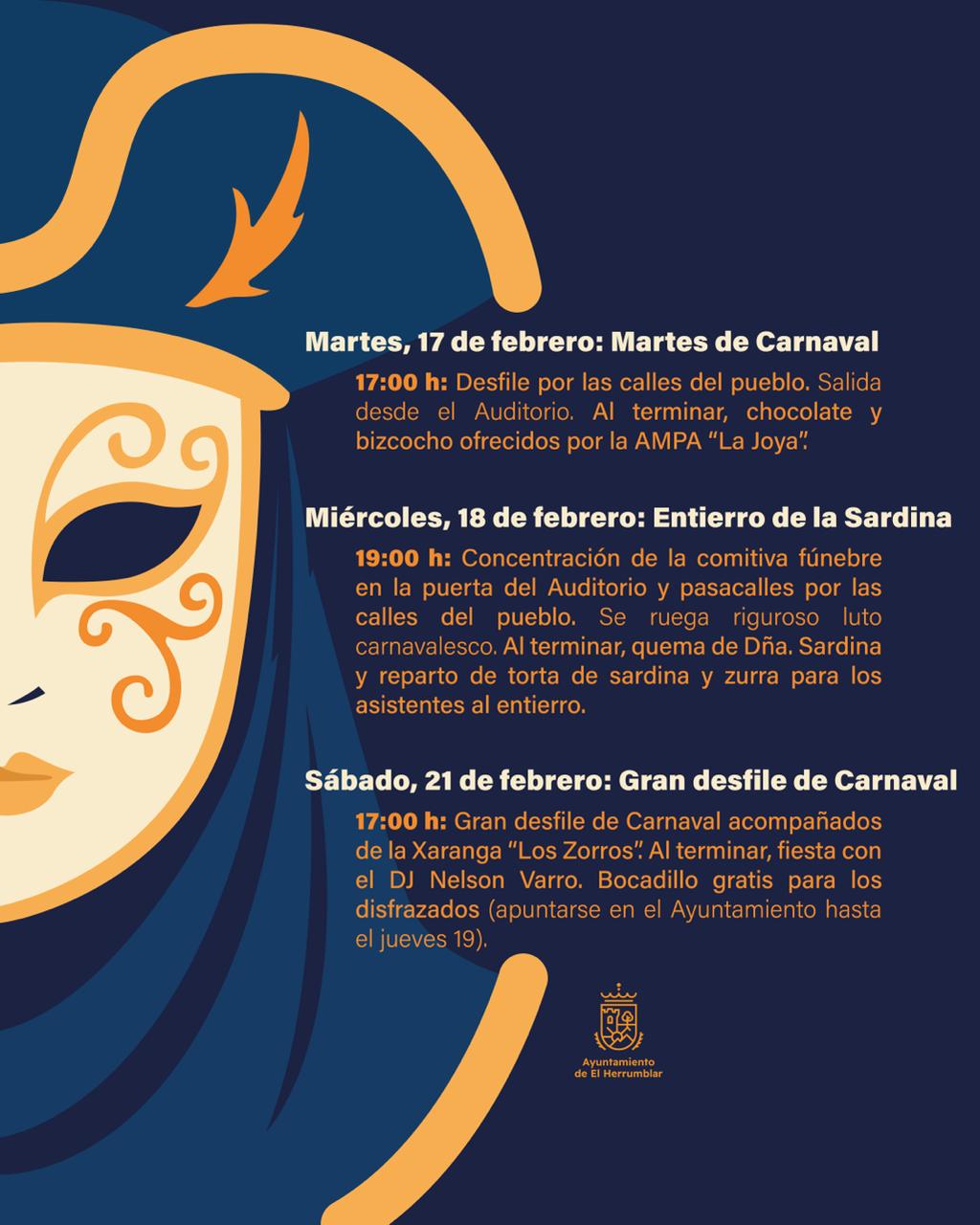 Desde el Ayuntamiento de El Herrumblar compartimos la programación de todos los actos que se han organizado este año con motivo del Carnaval:
