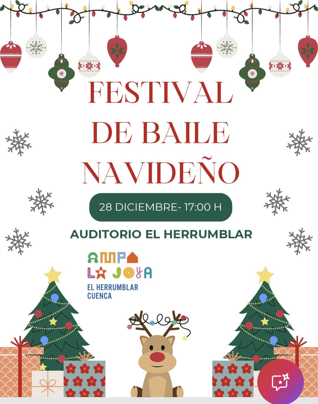 Desde el Ayuntamiento de El Herrumblar os invitamos a disfrutar del Festival de Baile Navideño, organizado por la AMPA “La Joya”, una cita llena de ritmo, ilusión y espíritu navideño.