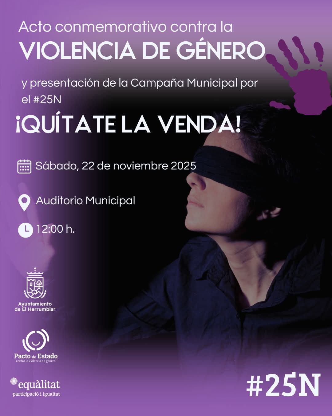 Desde el Ayuntamiento de El Herrumblar os informamos que mañana, sábado 22 de noviembre de 2025, se celebrará el acto conmemorativo contra la Violencia de Género con motivo del #25N.