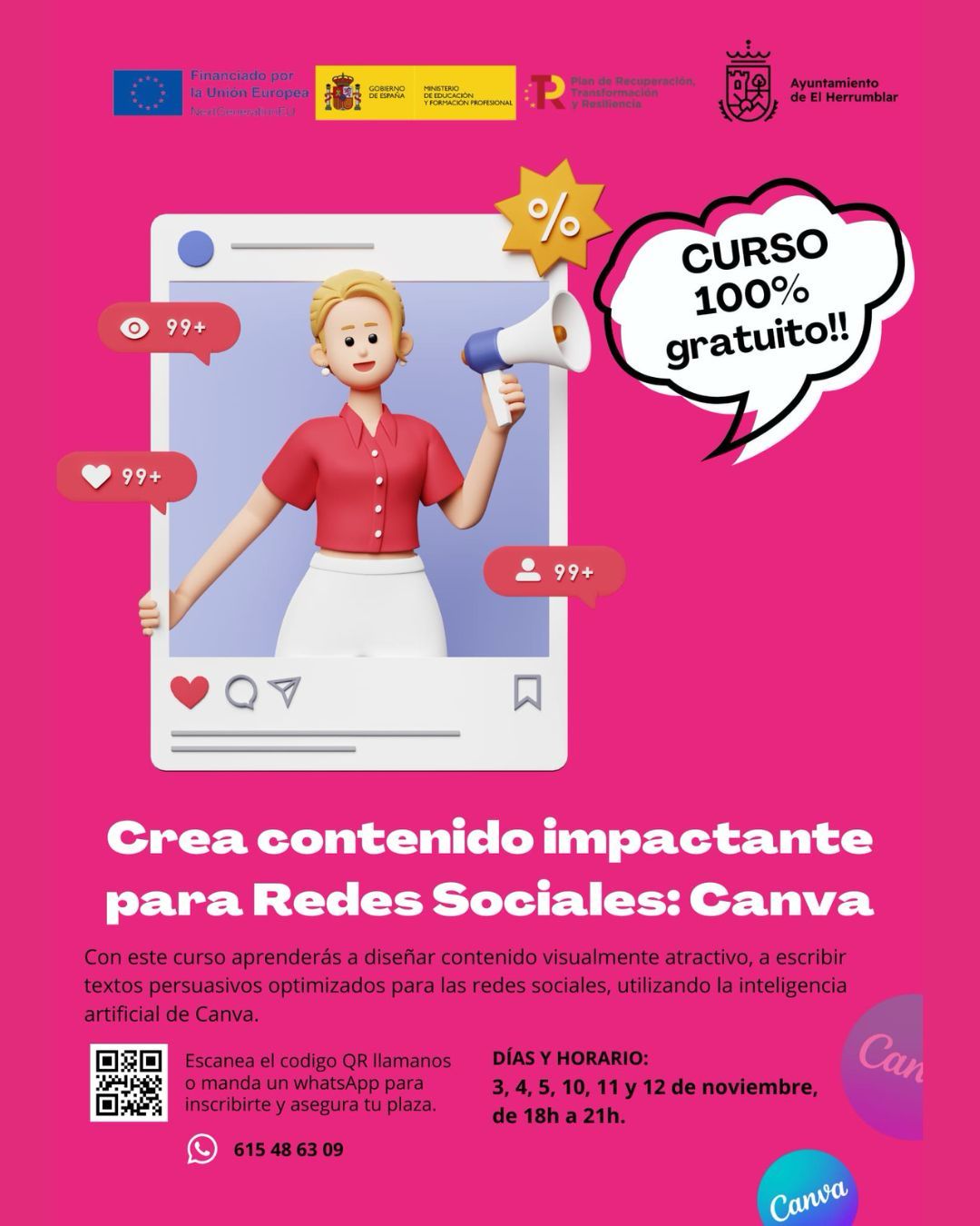 Desde el Ayuntamiento de El Herrumblar compartimos esta nueva propuesta formativa online, gratuita, pensada para quienes desean mejorar su presencia digital y aprender a comunicar de forma creativa y efectiva.