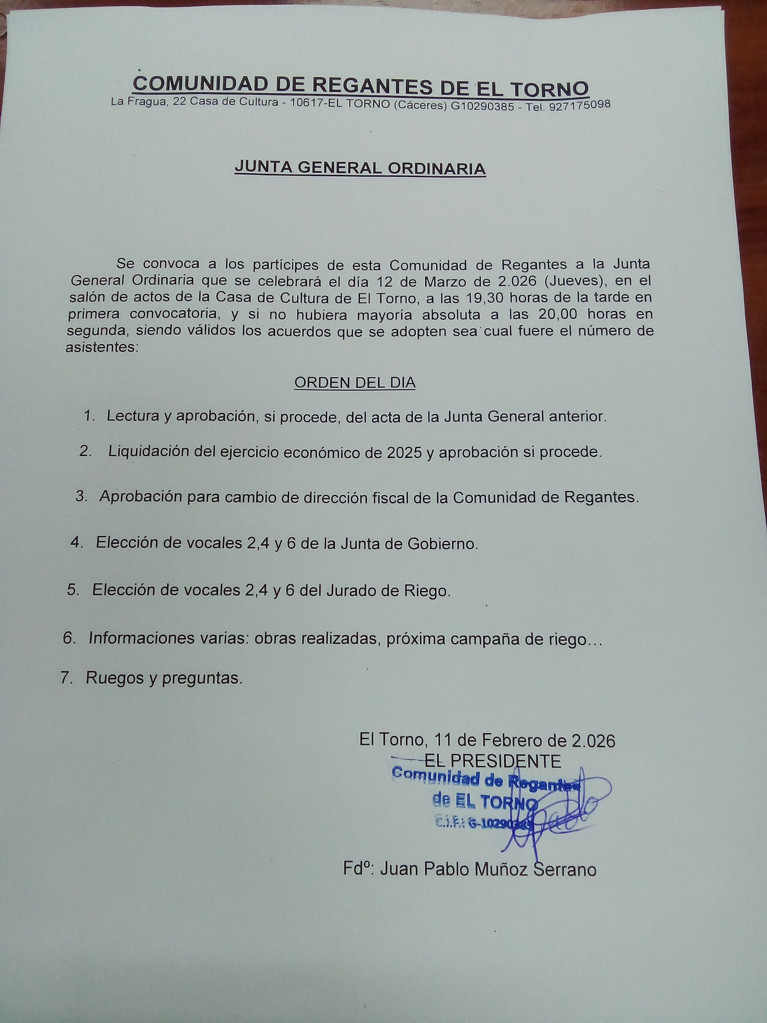 Domingo 22 de febrero de 2026 a las 13 h en primera convocatoria, a las 13:30 h en segunda convocatoria.