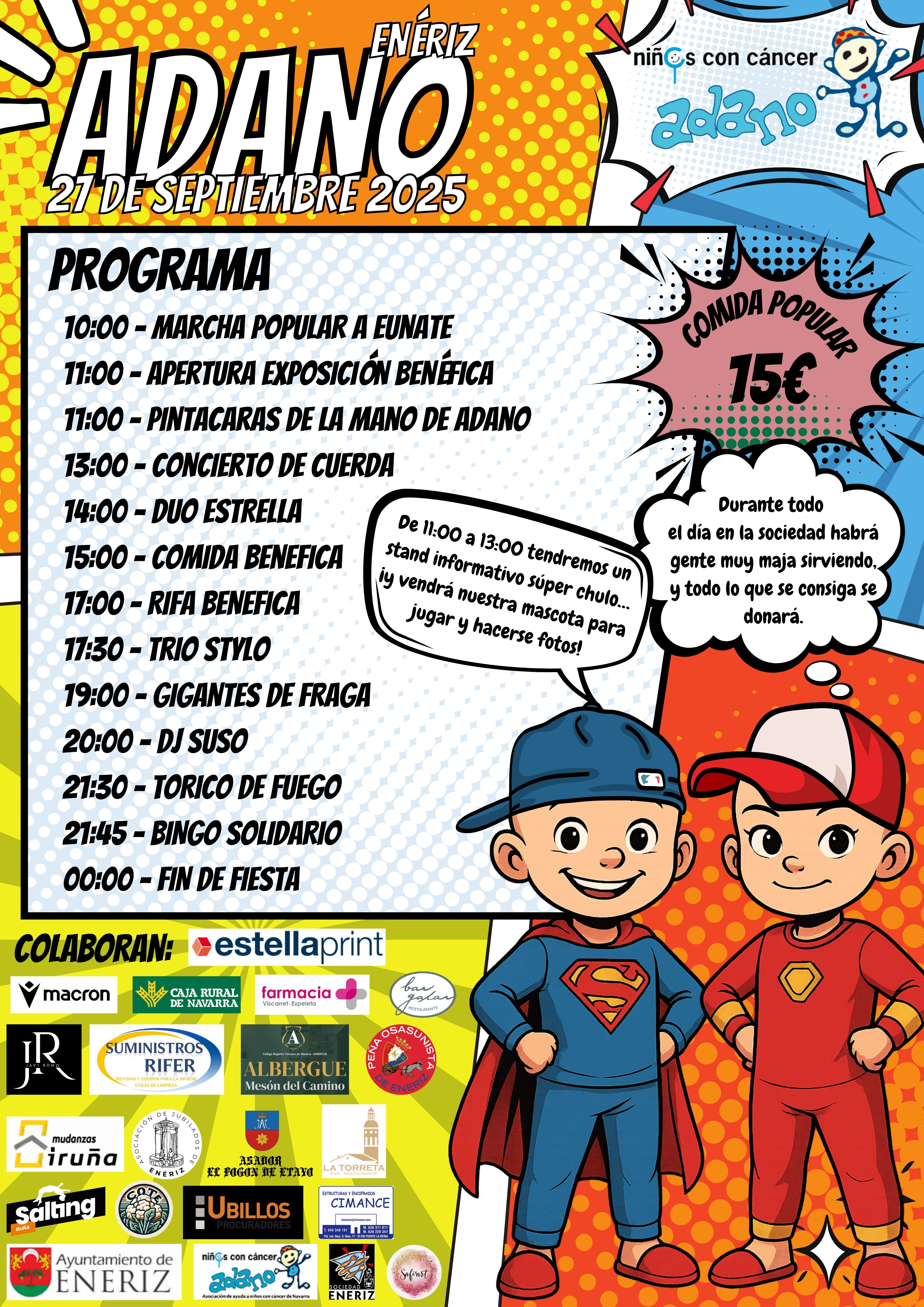 Este sábado 27 de septiembre Enériz vuelve a vestirse de solidaridad. Un año más celebramos nuestra jornada solidaria, y en esta ocasión todo lo recaudado será para ADANO, la asociación que ayuda a niños y niñas con cáncer y a sus familias.