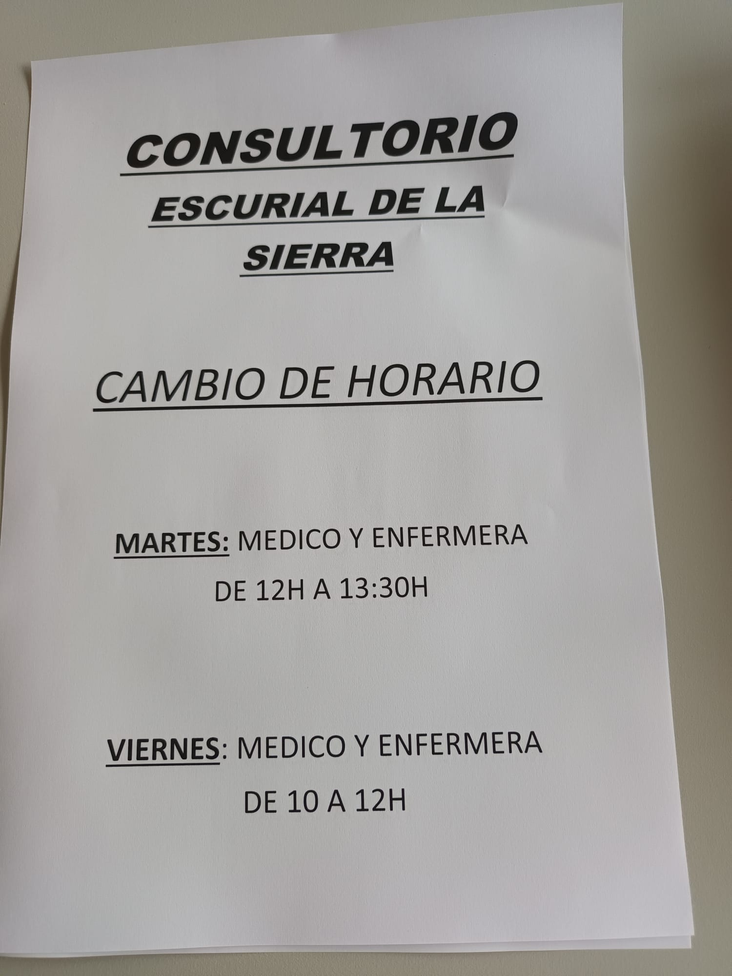 Informamos a los vecinos del nuevo horario del Consultorio: