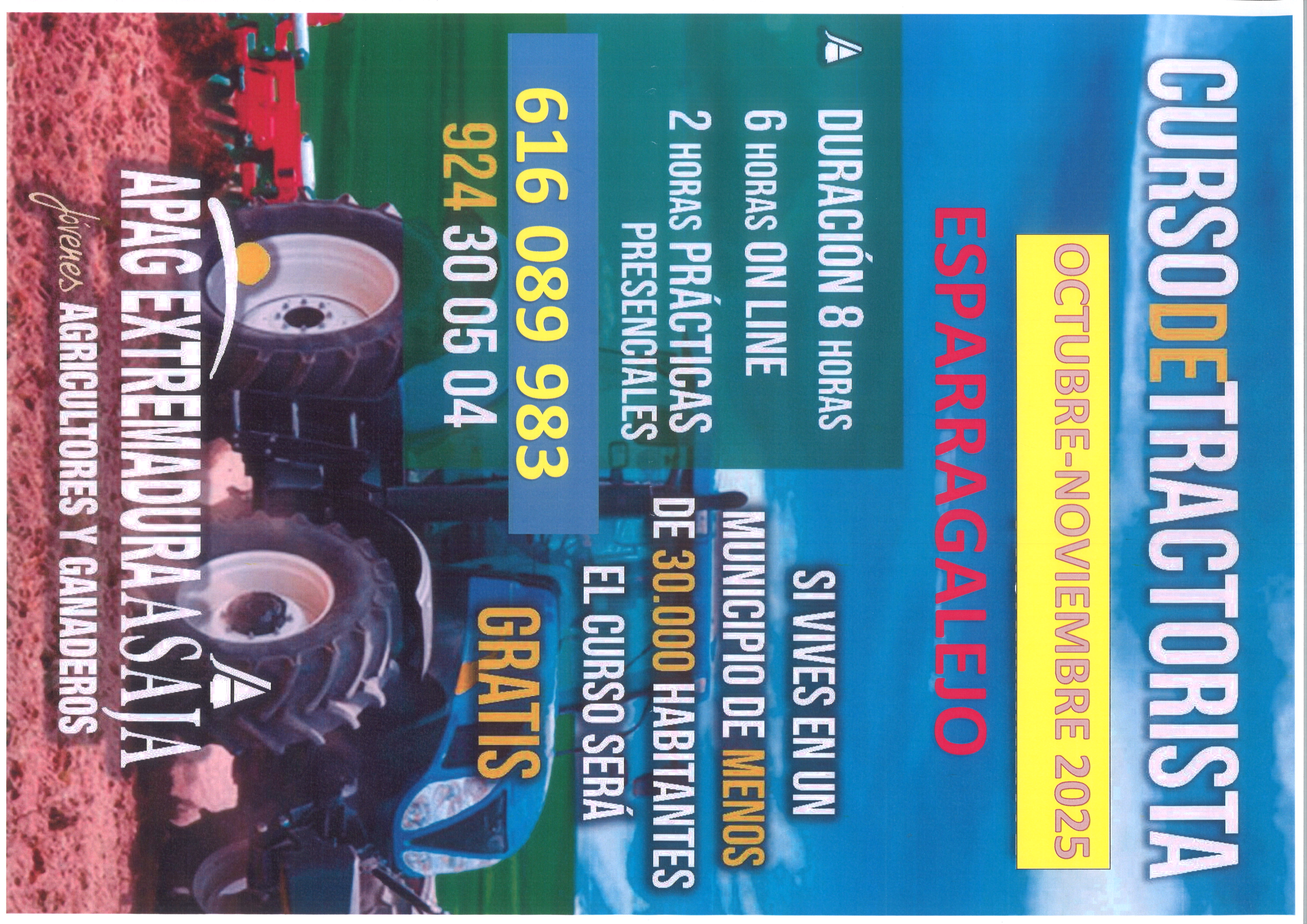 Las personas interesadas en realizar el curso de prevención para conductores de tractor pueden inscribirse a través de los teléfonos 616 089 983 y/o 924 30 05 04.