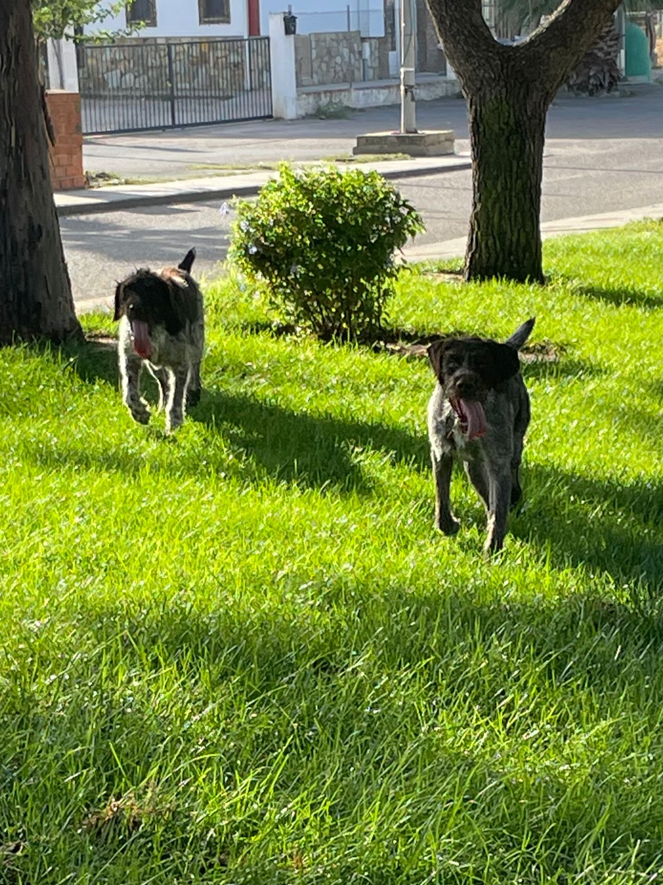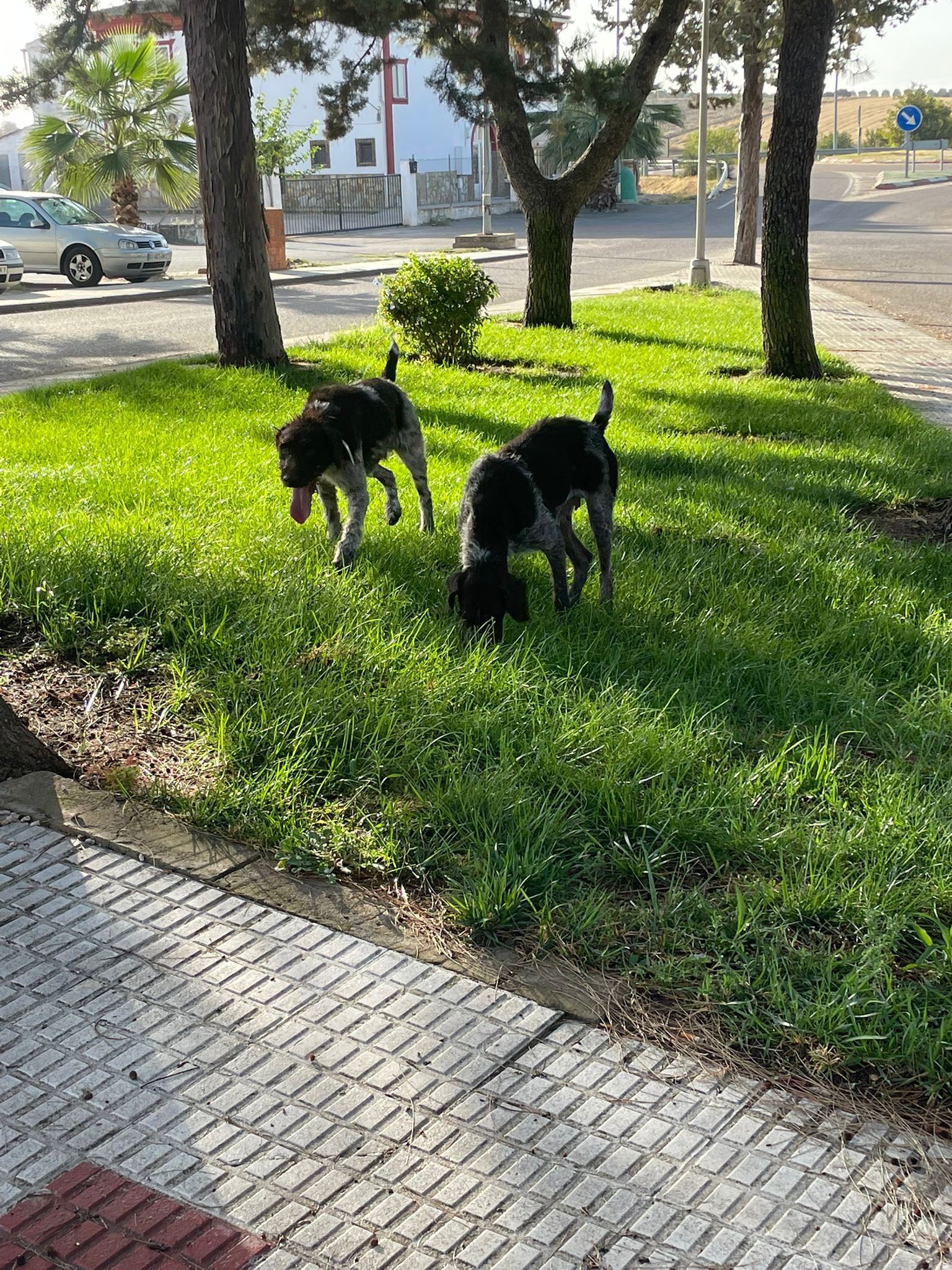 Se encuentra en la Carretera EX-209, a la altura de la granja porcina, un cachorro galgo suelto con collar. -