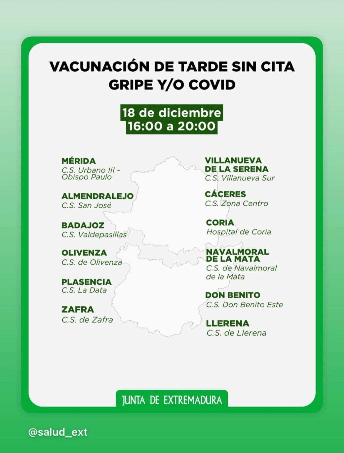 VACUNACION SIN CITA PARA GRIPE Y/O COVID EL 18 DE DICIEMBRE EN MÉRIDA.-