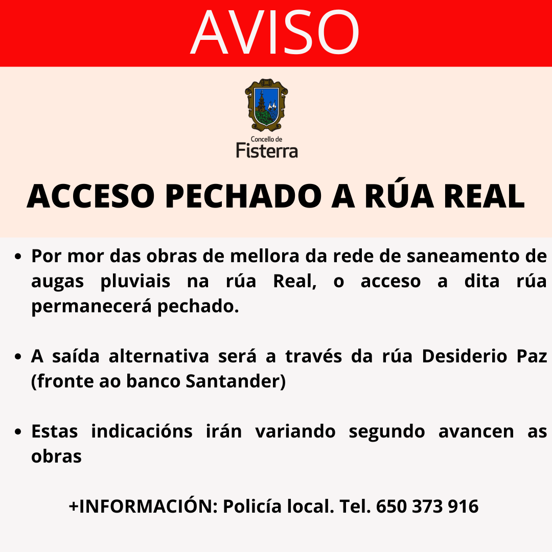 -Por mor das obras de mellora da rede de saneamento de augas pluviais na rúa Real, o acceso a dita rúa permanecerá pechado