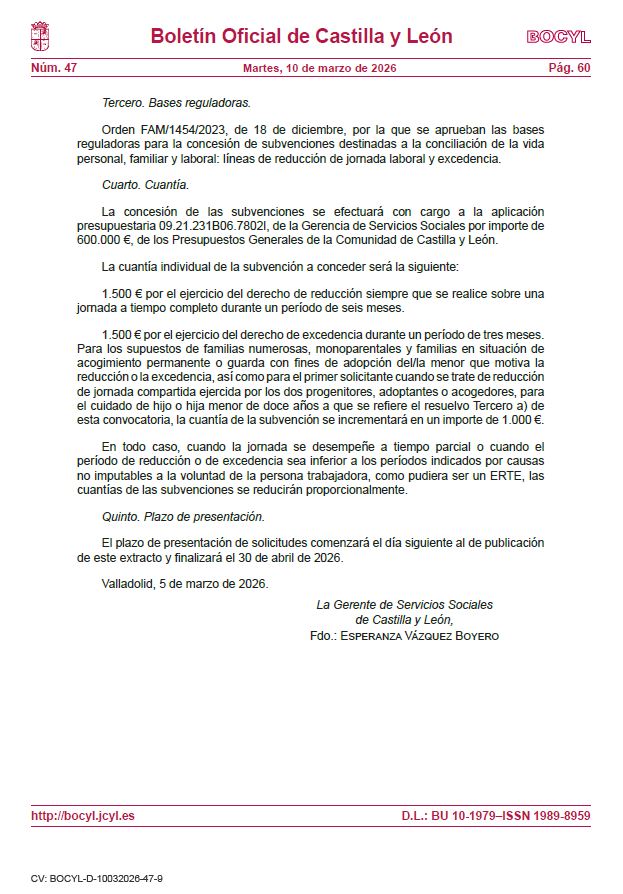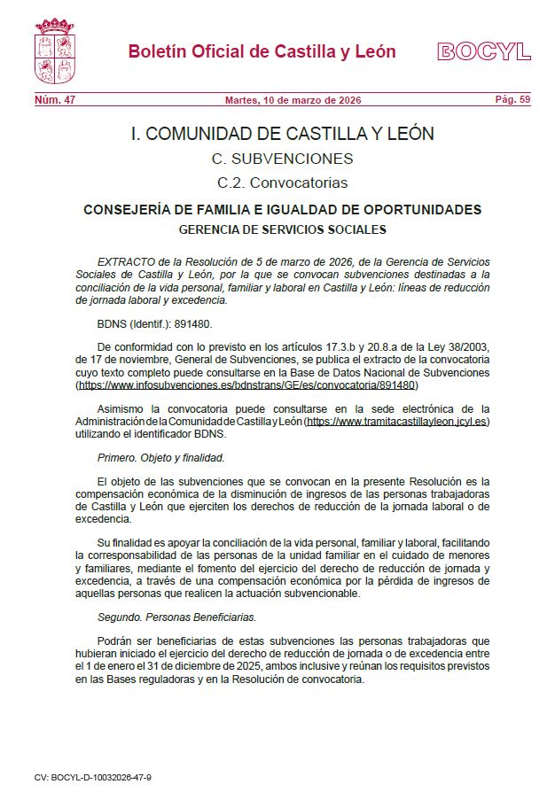 SUBVENCION DESTINADA A LA CONCILIACION DE VIDA PERSOANLNAL, FAMILIAR Y LABORAL EN CASTILLA Y LEON