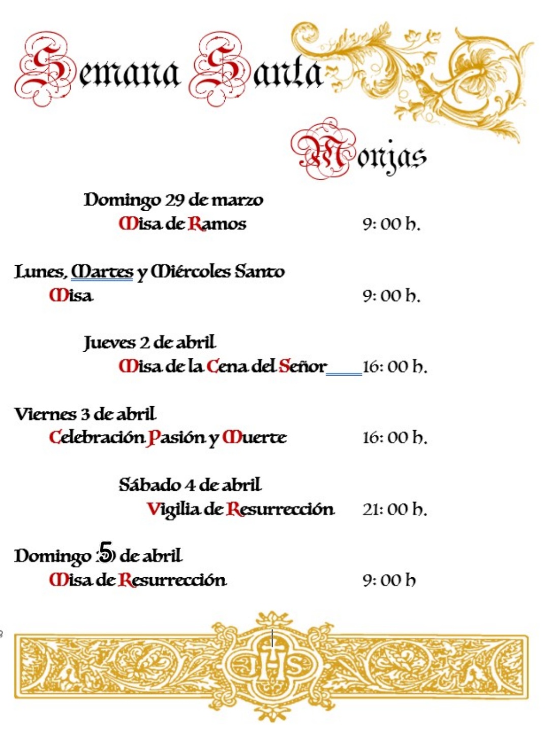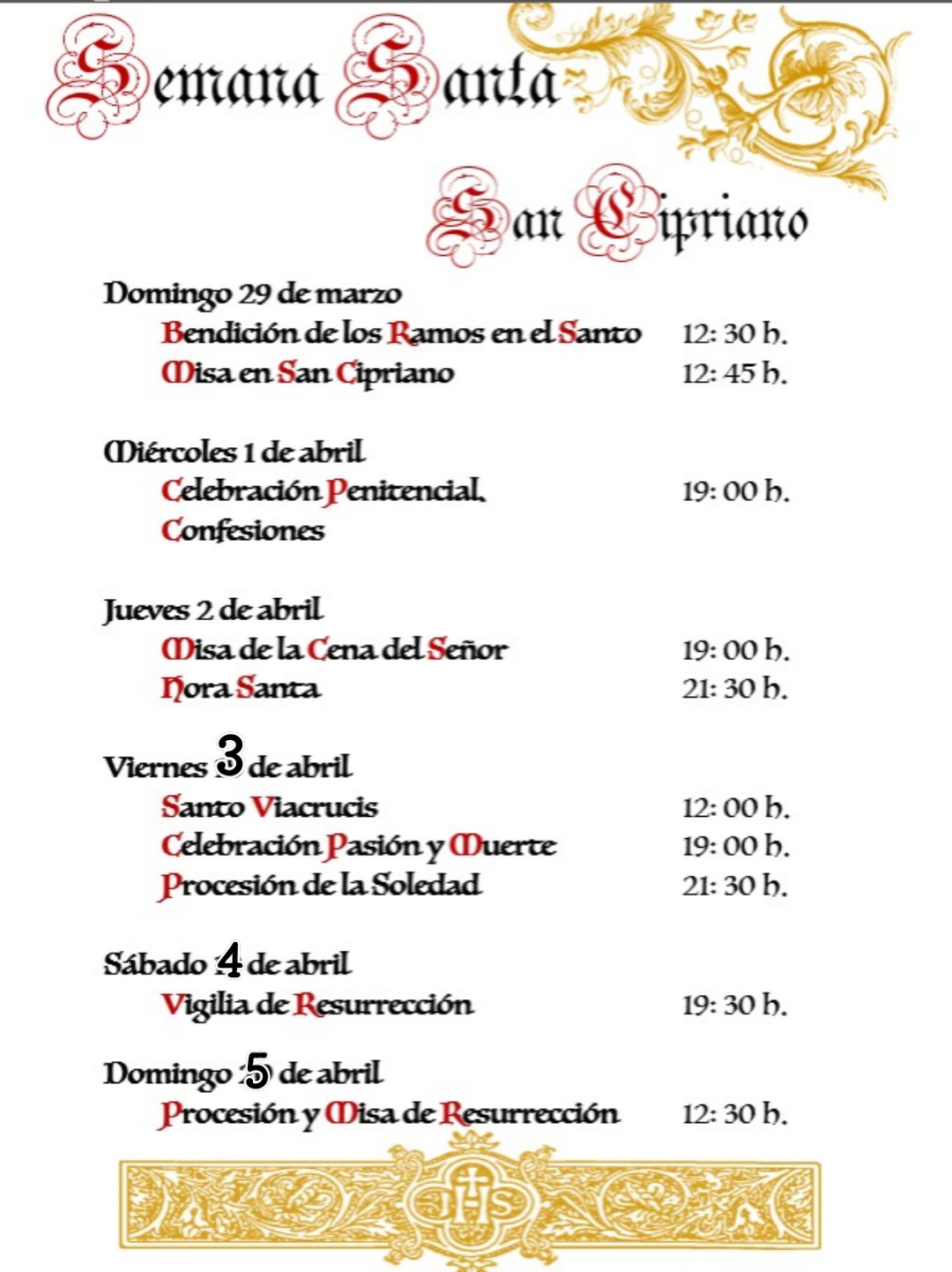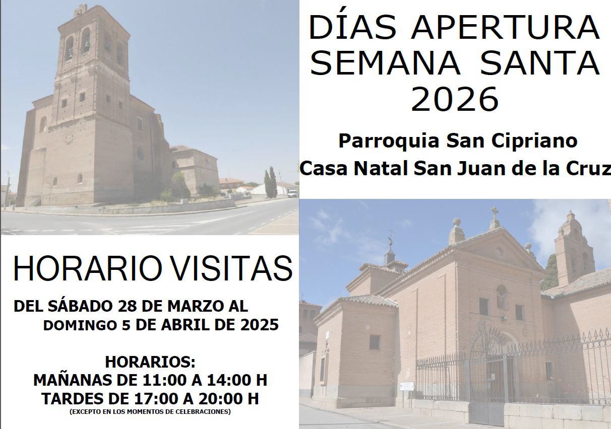 DÍAS DE APERTURA PARROQUI Y CASA NATAL EN SEMANA SANTA 2026
