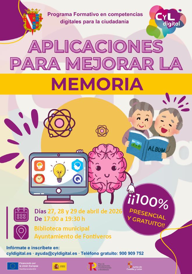 Desde CyL Digital nos ofrecen curso gratuito y presencial de APLICACIONES PARA MEJORAR LA MEMORIA, para los días: