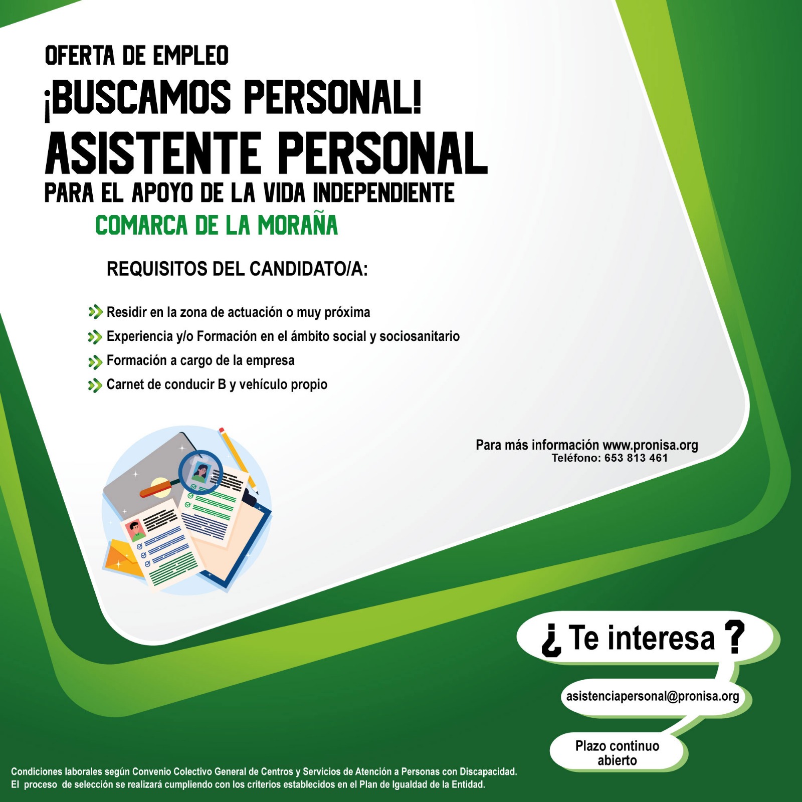 Desde PRONISA, ofrecen puesto de trabajo de ASISTENTE PERSONAL, para el apoyo de la vida independiente para Comarca de la Moraña.