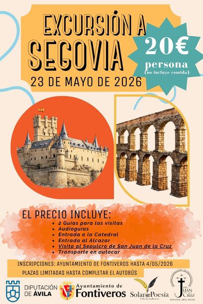 Desde el Ayuntamiento de Fontiveros, se está organizando VIAJE A SEGOVIA, para el próximo sábado 23 de mayo de 2026.