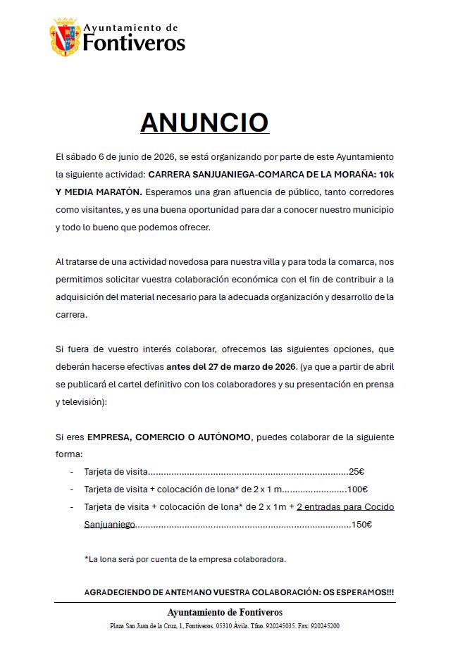 ANUNCIO COLABORACION EMPRESAS PARA CARRERA SANJUANIEGA-COMARCA DE LA MORAÑA