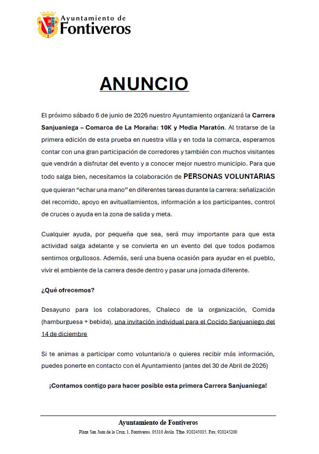 ANUNCIO COLABORACION VOLUNTARIOS PARA CARRERA SANJUANIEGA-COMARCA DE LA MORAÑA 2026