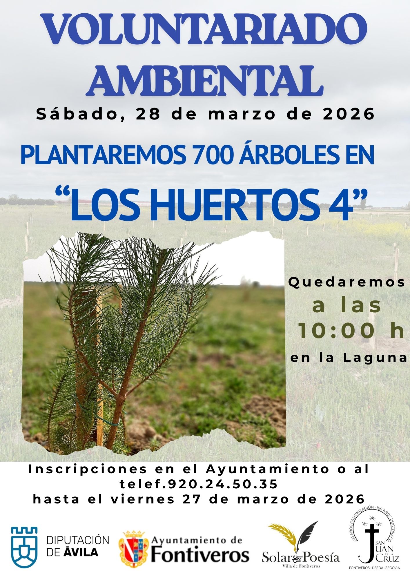 Desde el Ayuntamiento de Fontiveros, se está organizando para el próximo sábado 28 de marzo de 2026, el día del VOLUNTARIADO AMBIENTAL, plantando la cantidad de unos 700 árboles (3 hectáreas), la plantación será en la parcela Municipal de "Los Huertos 4".
